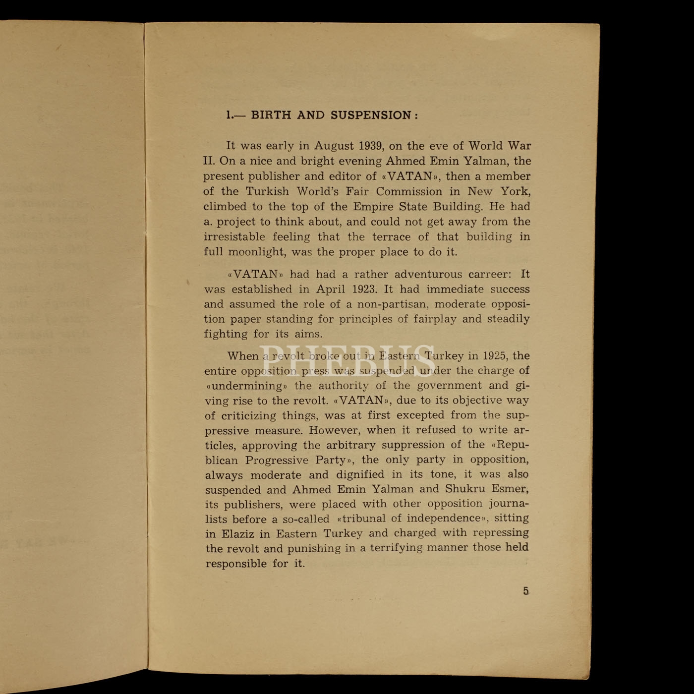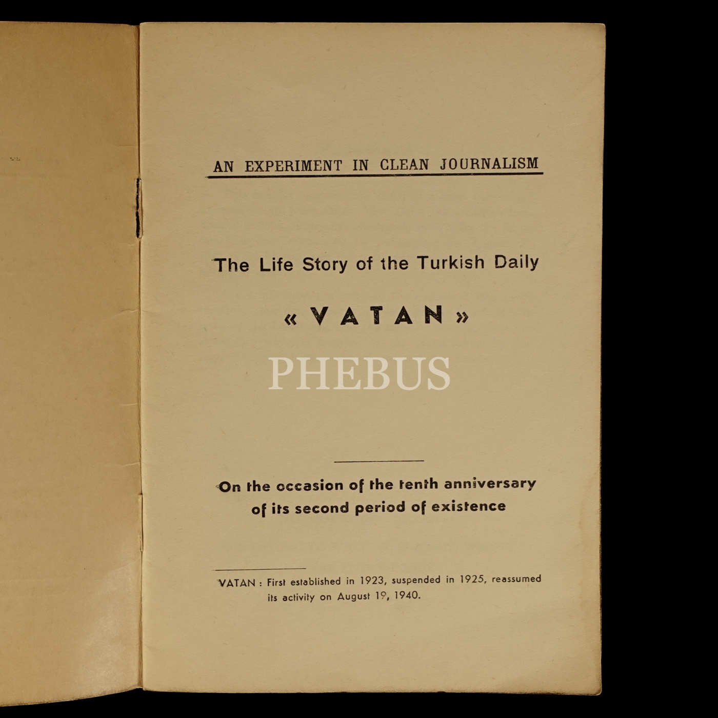 THE LIFE STORY OF THE TURKISH DAILY "VATAN", 1950, Kâğıt ve Basım İşleri A.Ş., 28 sayfa, 14x20 cm...