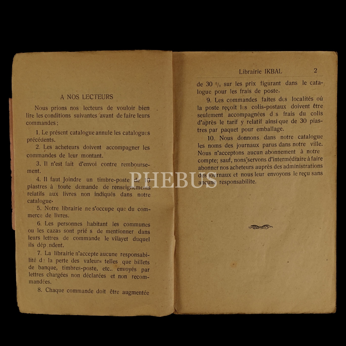 İKBAL KÜTÜPHANESİ´NİN UMUMİ KİTAP FİHRİSTİ, 1925, Garabet Matbaası, 157 sayfa, 12x18 cm...