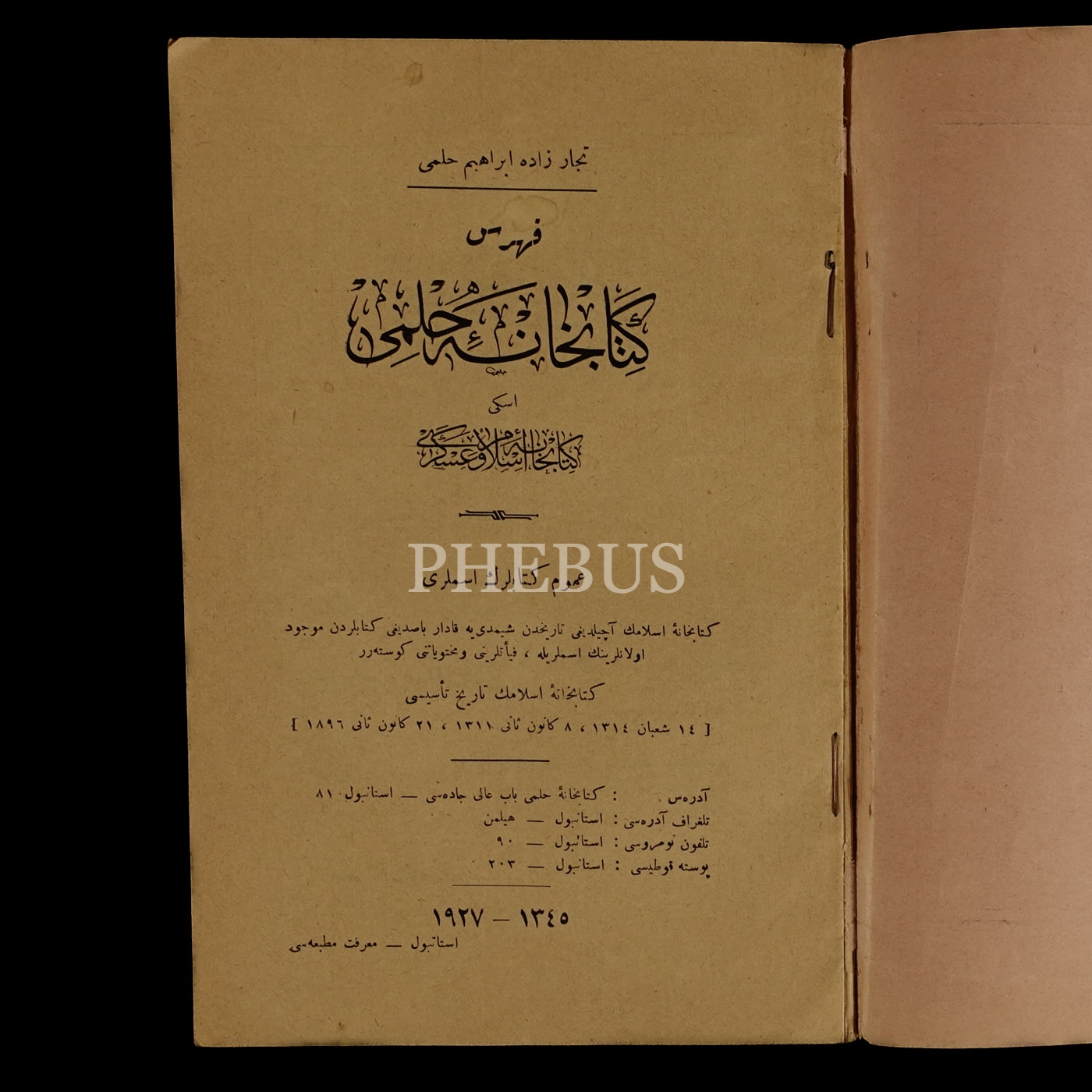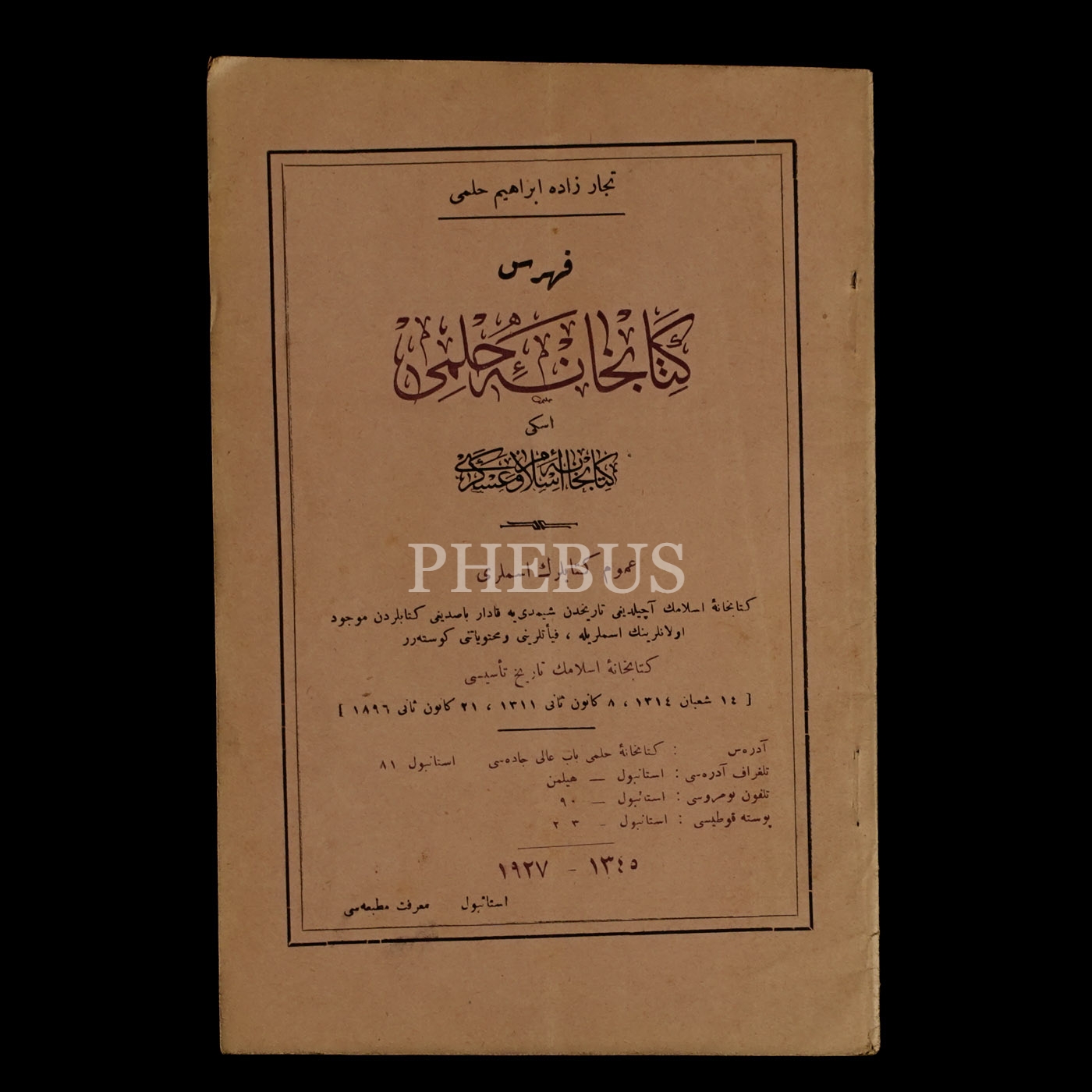 KİTAPHANE-İ HİLMİ FİHRİSTİ, 1927, Marifet Matbaası, 82 sayfa, 15x23 cm...