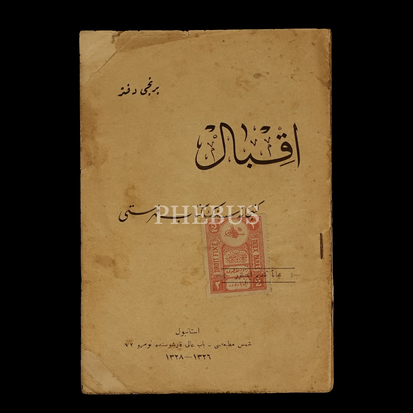 İKBAL KÜTÜPHANESİ´NİN KİTAP FİHRİSTİ (Birinci Defter), 1326-1328, Şems Matbaası, 170 sayfa, 12x18 cm...