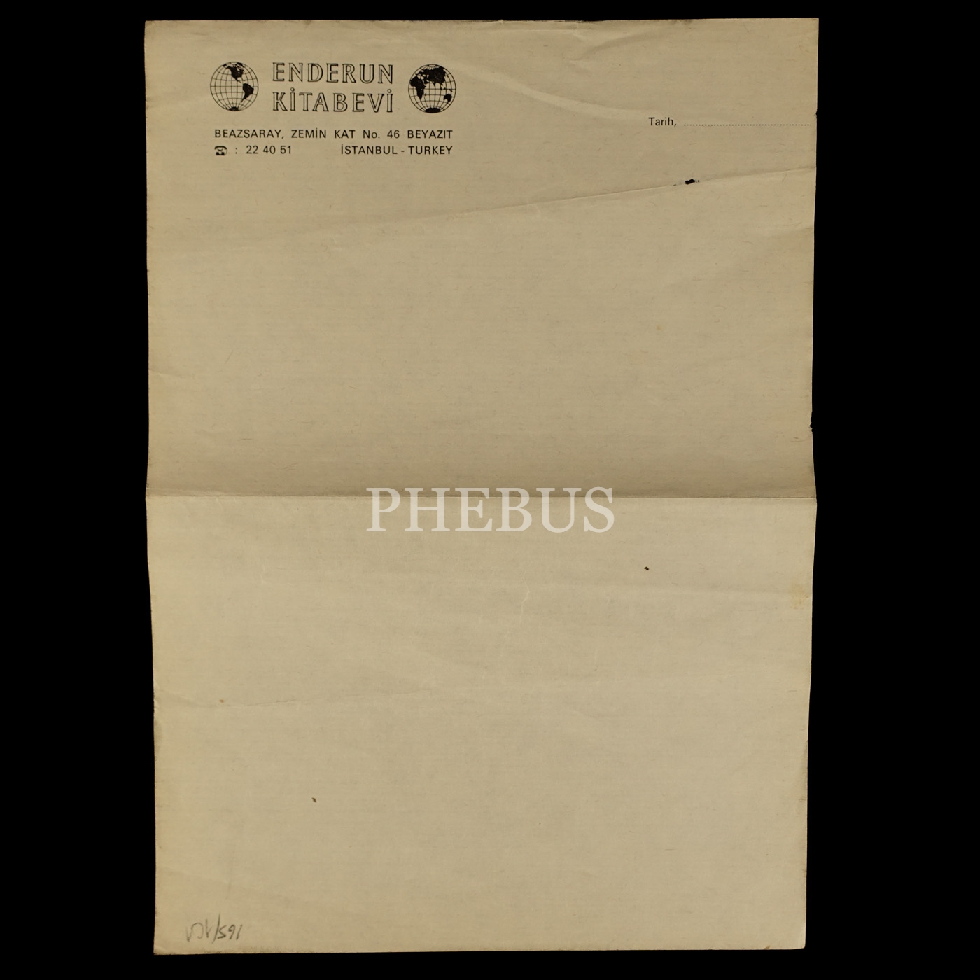 "Enderun Kitabevi (Beyazsaray, Beyazıt)" antetli boş kâğıt, 19x27 cm...