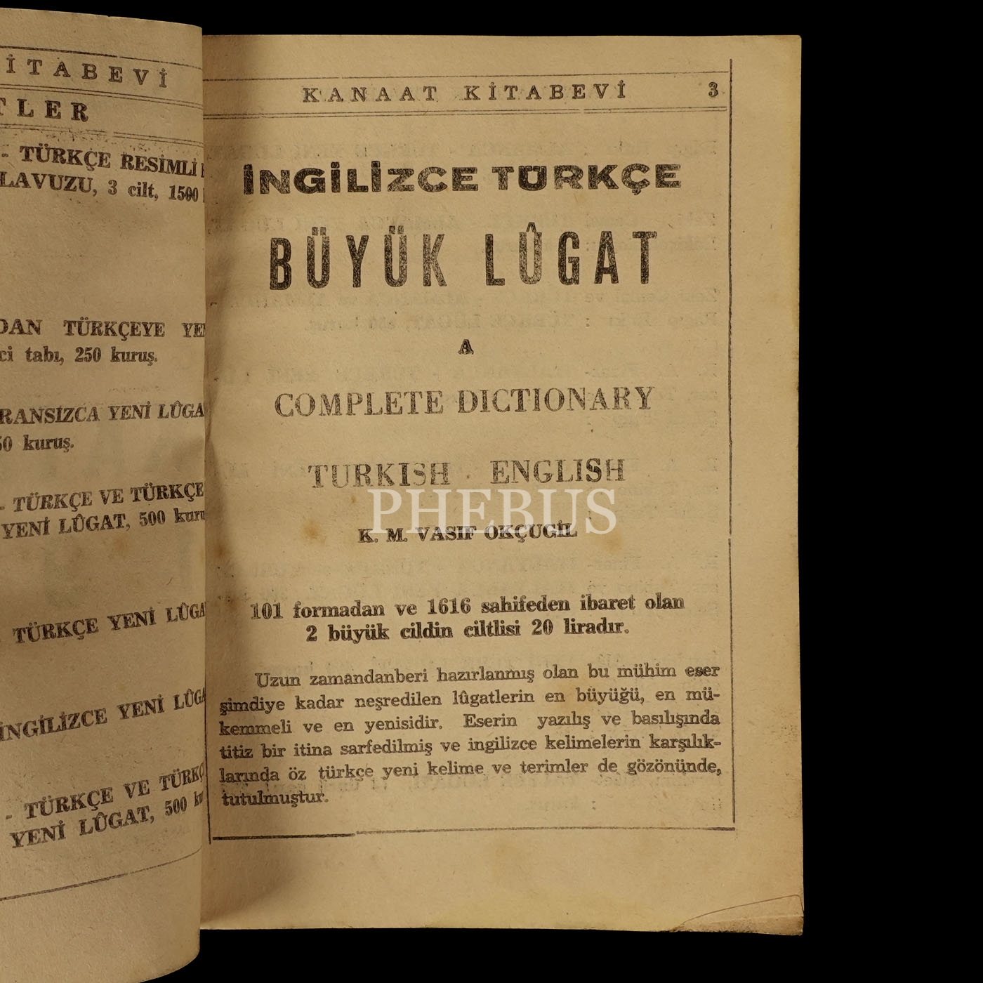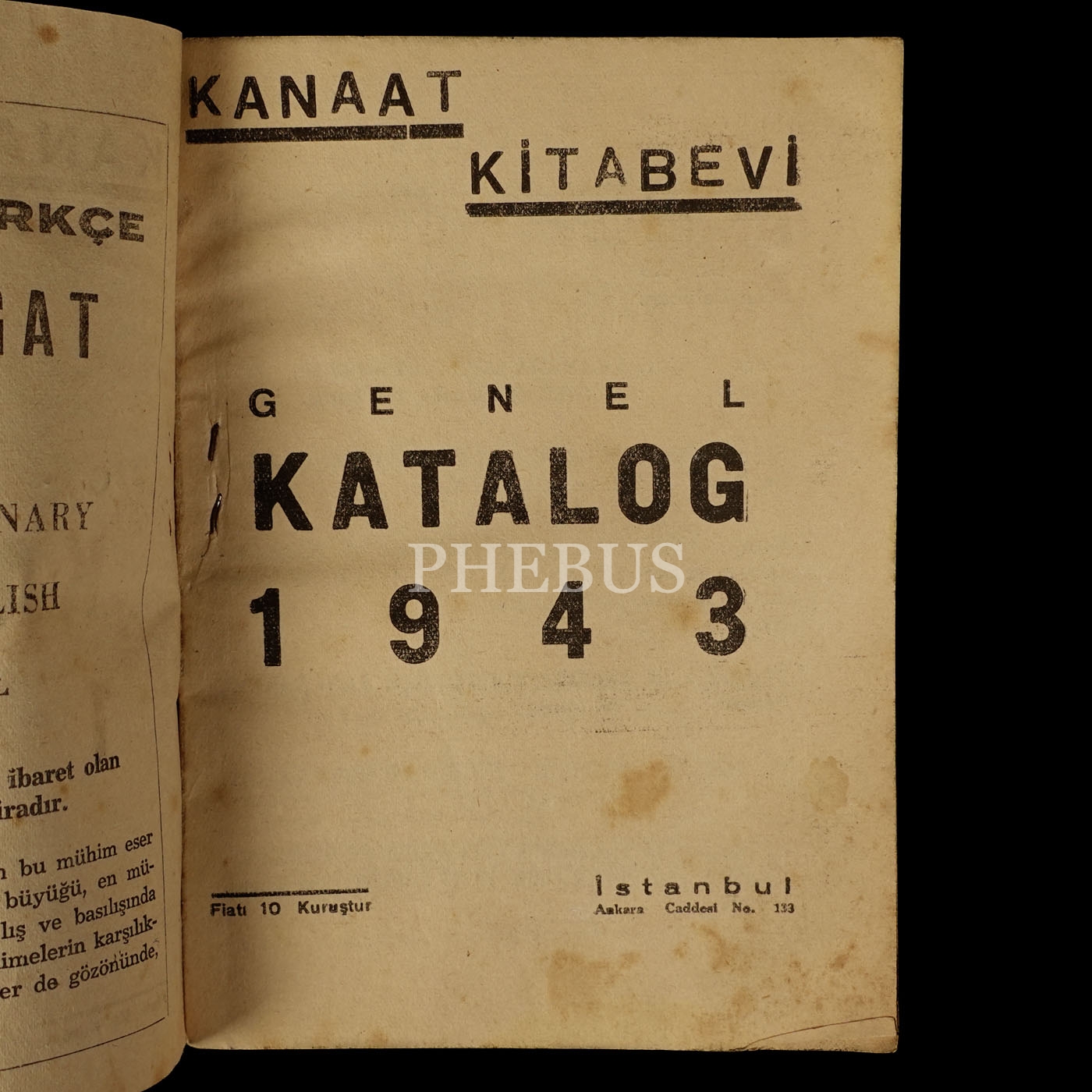 KANAAT KİTABEVİ GENEL KATALOG, 1943, 64 sayfa, 12x17 cm...