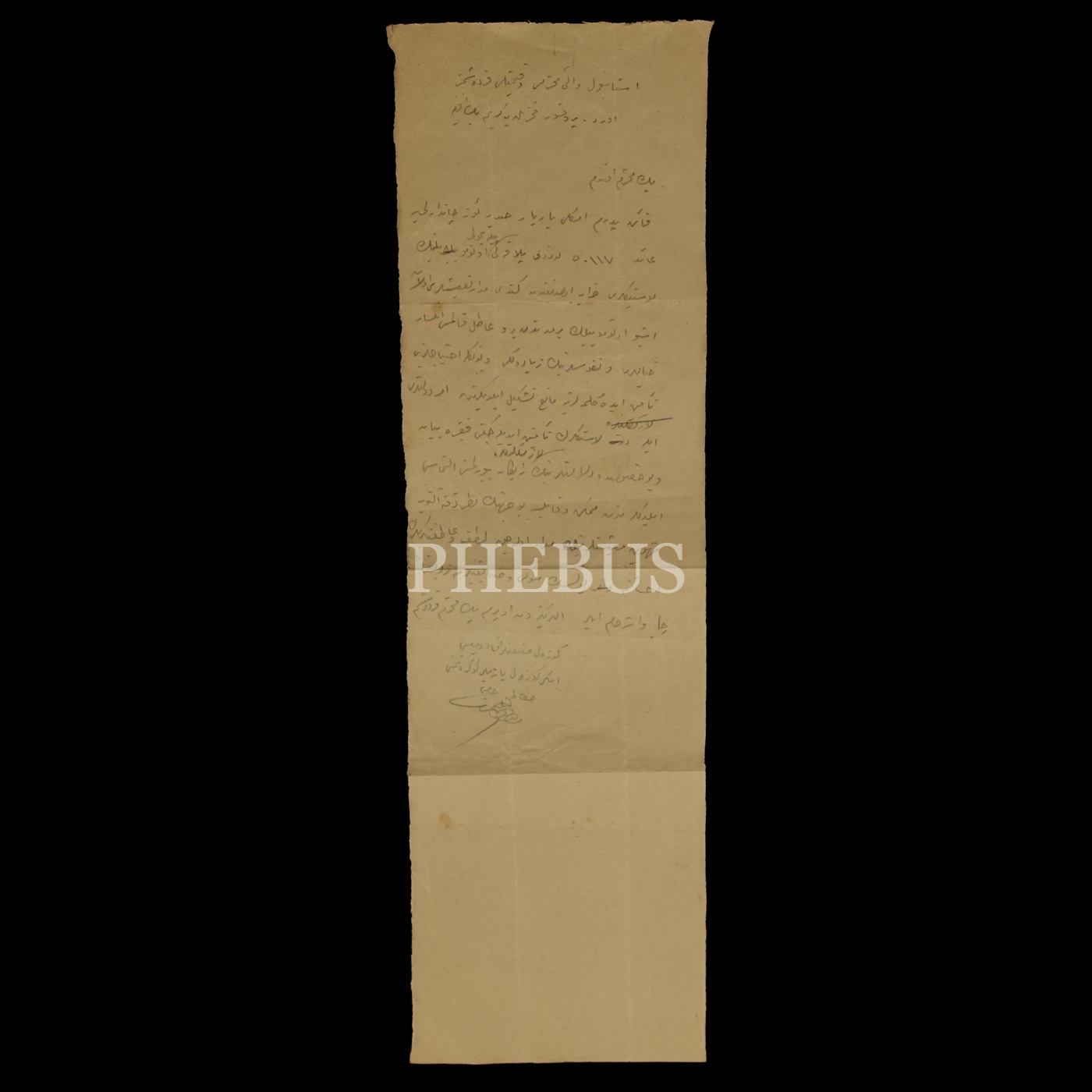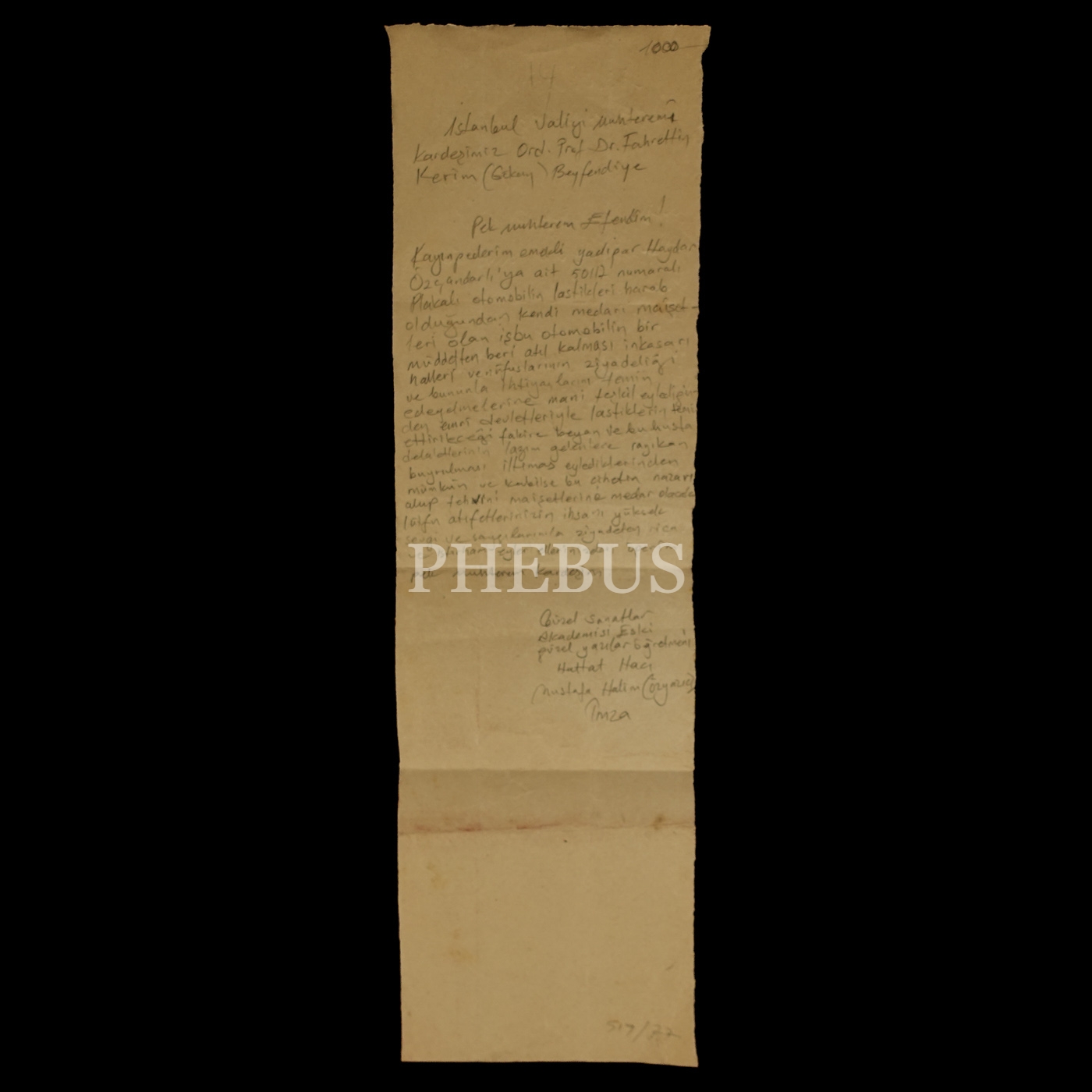 Halim Özyazıcı´nın, kayınpederinin otomobil lastiklerinin yenilenmesi hususunda İstanbul Valisi Fahrettin Kerim Gökay'dan yardım istediği mektup, 10x33 cm...