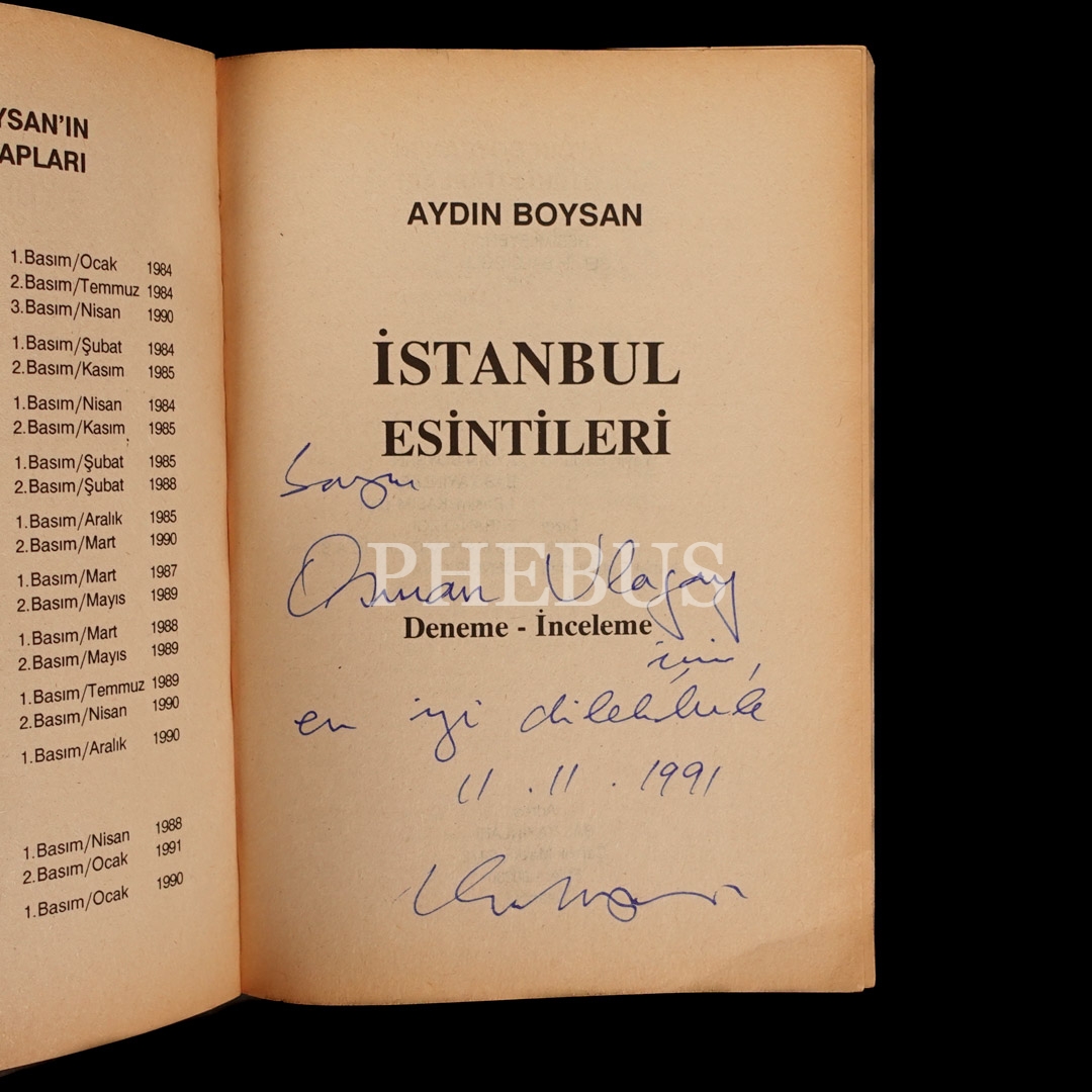 İSTANBUL ESİNTİLERİ (Deneme - İnceleme), Aydın Boysan, 1991, Bas Yayınları, 230 sayfa, 14x20 cm...
