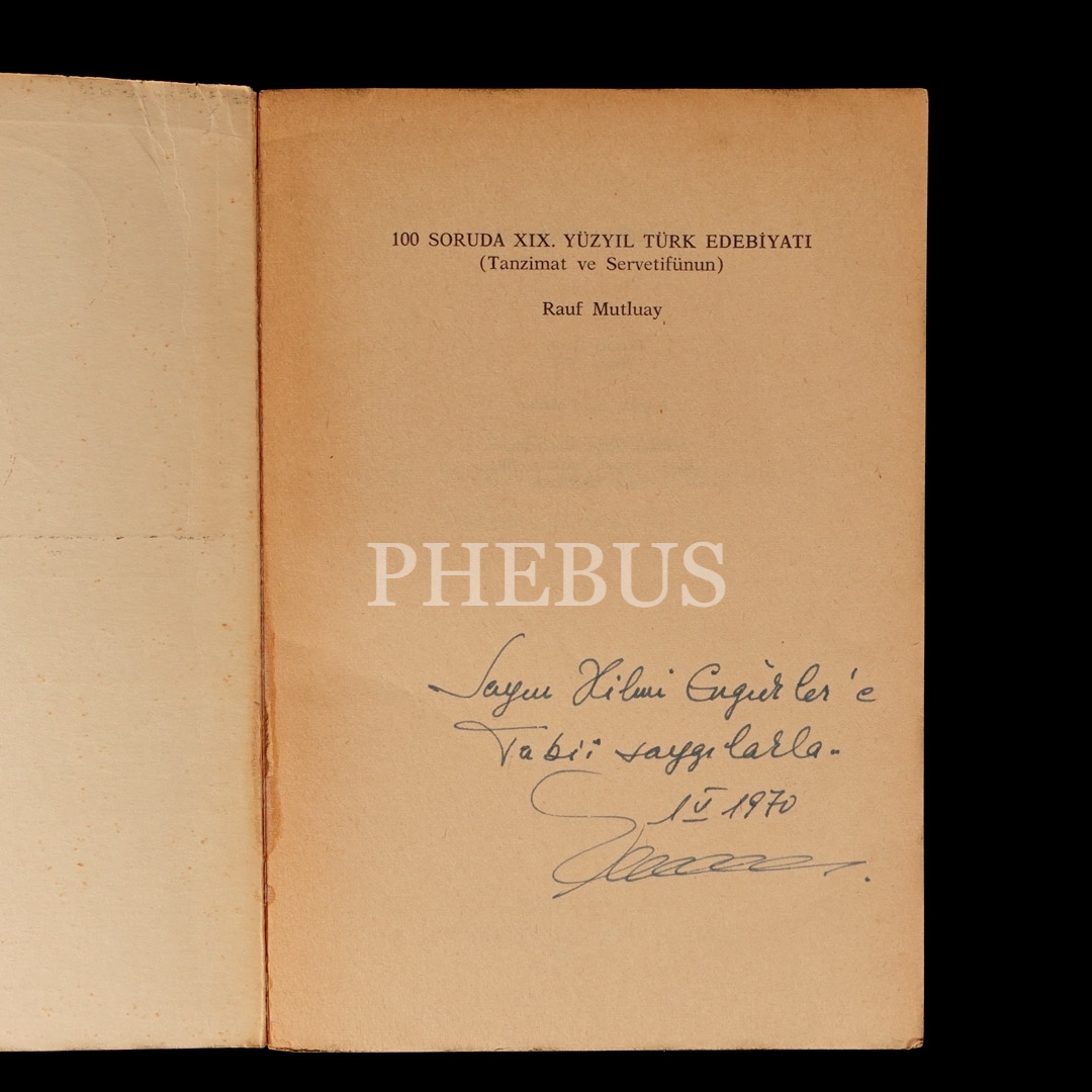 100 SORUDA XIX. YÜZYIL EDEBİYATI (Tanzimat ve Servetifünun), Rauf Mutluay, 1970, Gerçek Yayınevi, 252 sayfa, 14x20 cm...