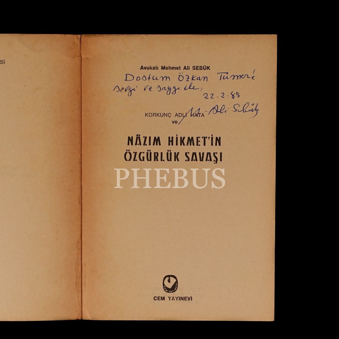 KOKRUNÇ ADLİ HATA VE NÂZIM HİKMET´İN ÖZGÜRLÜK SAVAŞI, (Avukatı) Mehmet Ali Sebük, 1978, Cem Yayınevi, 354 sayfa, 14x20 cm...