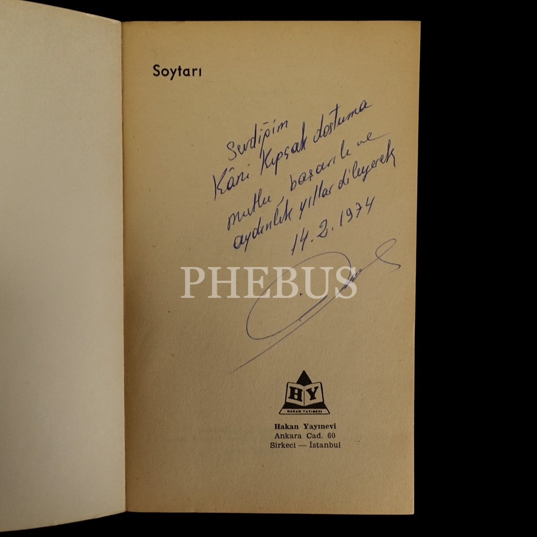 "Sevdiğim Kâni Kıpçak dostuma mutlu, başarılı ve aydınlık yıllar dileyerek." ithafıyla imzalıdır.