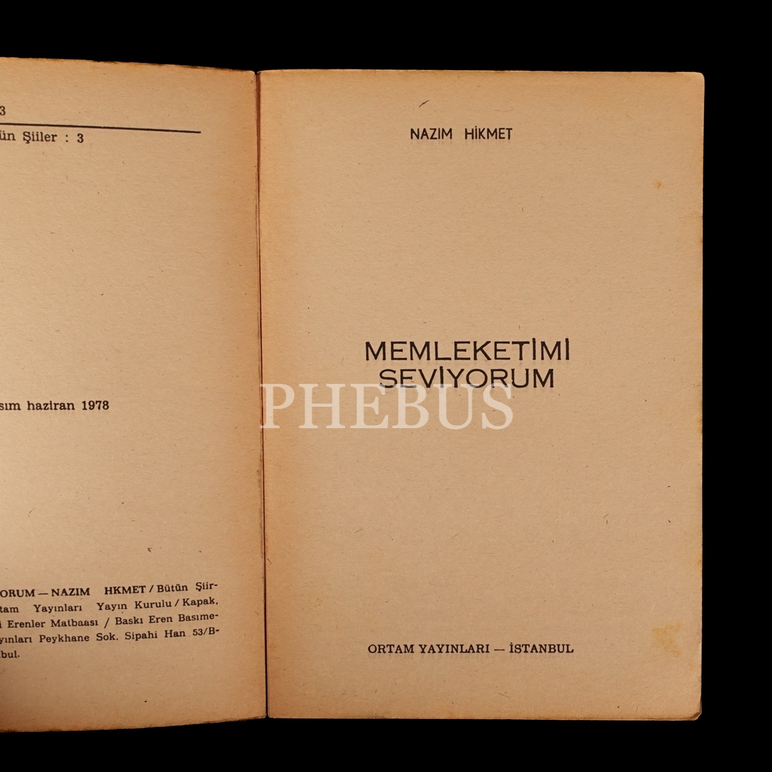 NÂZIM HİKMET (Bütün Şiirler - 3. Kitap: MEMLEKETİMİ SEVİYORUM), 1978, Ortam Yayınları, 189 sayfa, 14x20 cm...