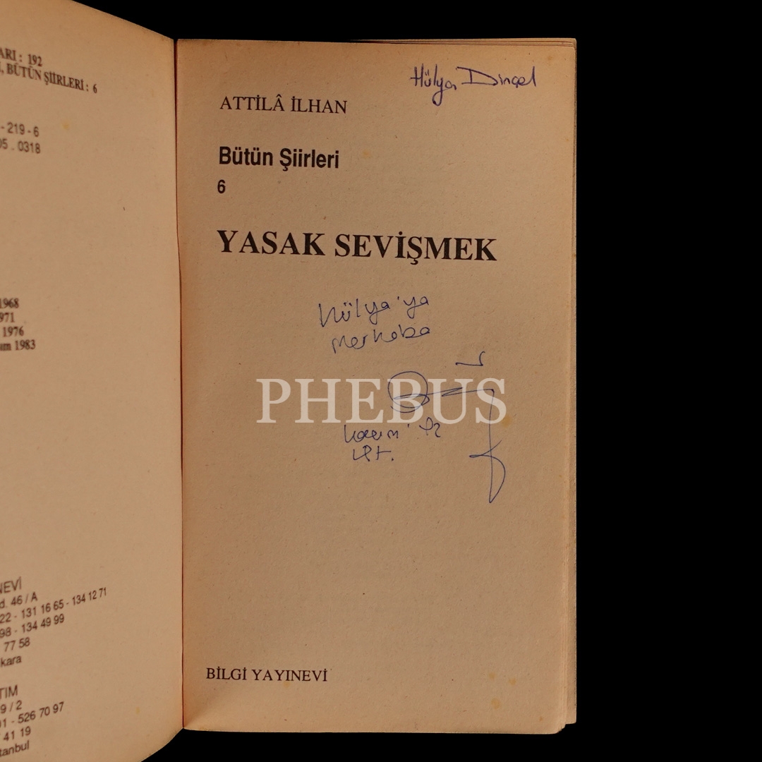 ATTİLÂ İLHAN (Bütün Şiirleri: 6) - YASAK SEVİŞMEK, 1991, Bilgi Yayınevi, 126 sayfa, 11x19 cm...