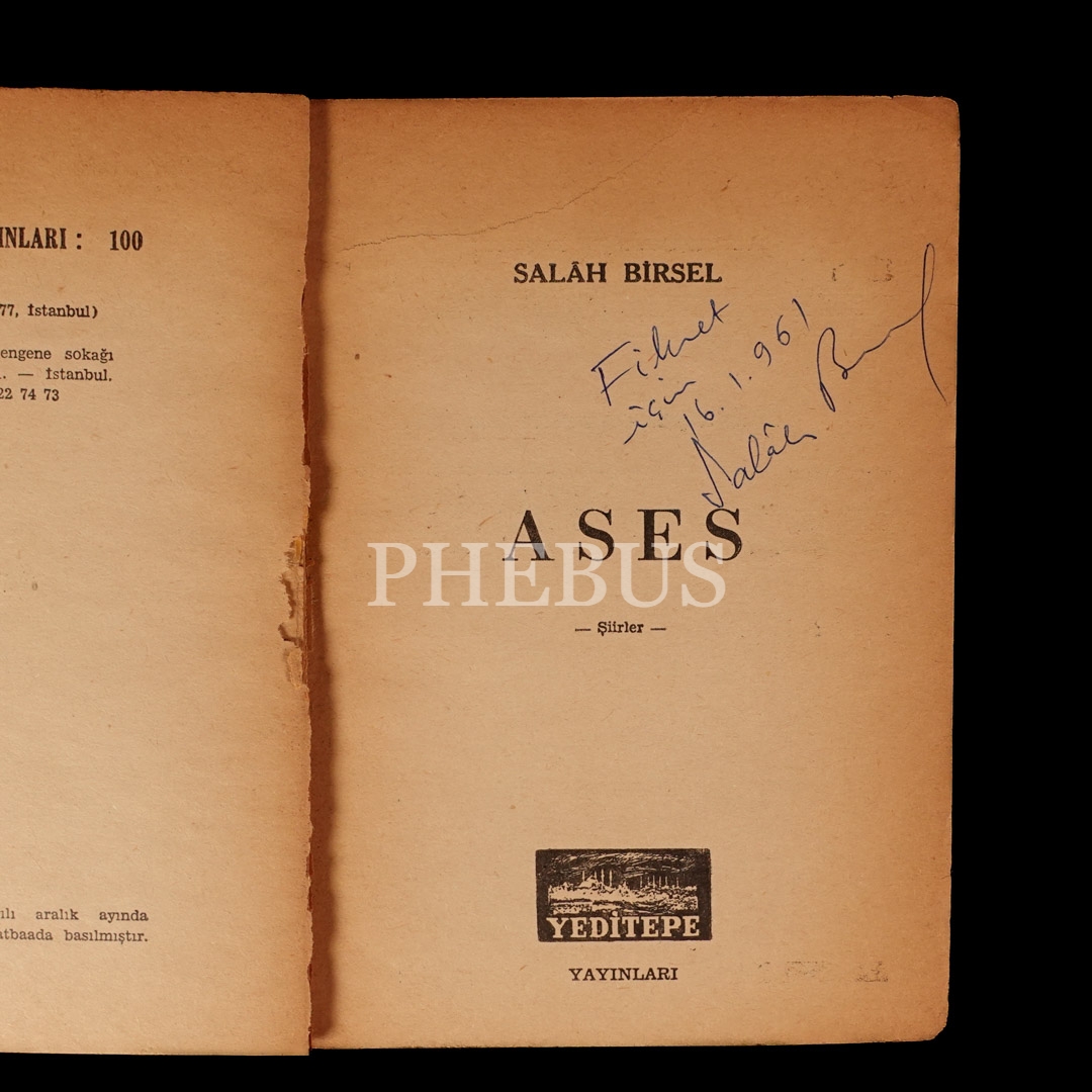 ASES (Şiirler), Salâh Birsel, 1960, Yeditepe Yayınları, 31 sayfa, 14x20 cm...
