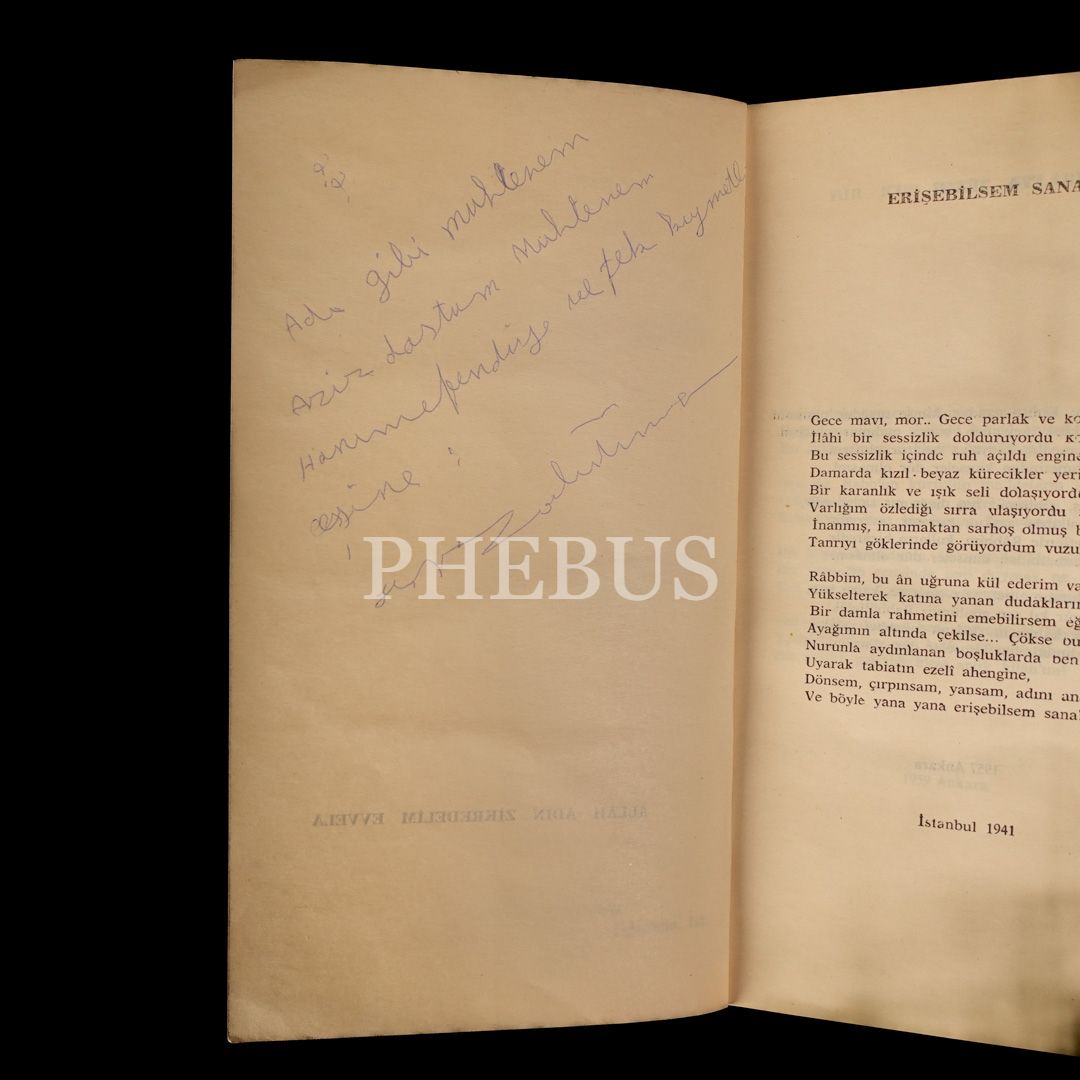 "Adı gibi muhterem aziz dostum Muhterem Hanımefendiye ve pek kıymetli eşine." ithafıyla imzalıdır.