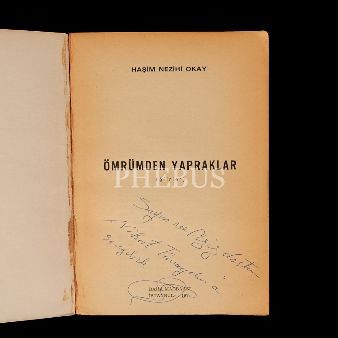 ÖMRÜMDEN YAPRAKLAR (Şiirler), Haşim Nezihi Okay, 1978, Baha Matbaası, 184 sayfa, 14x20 cm...