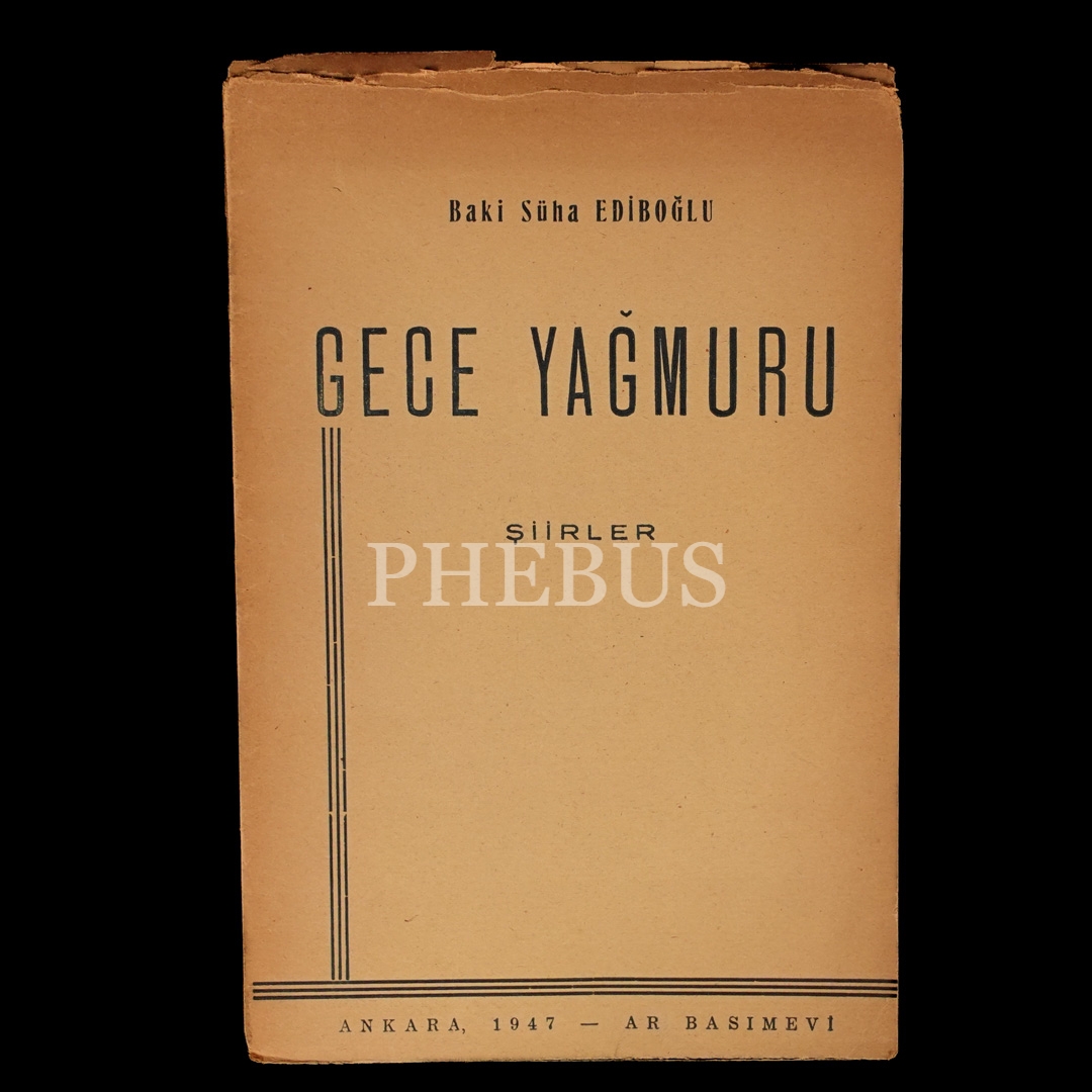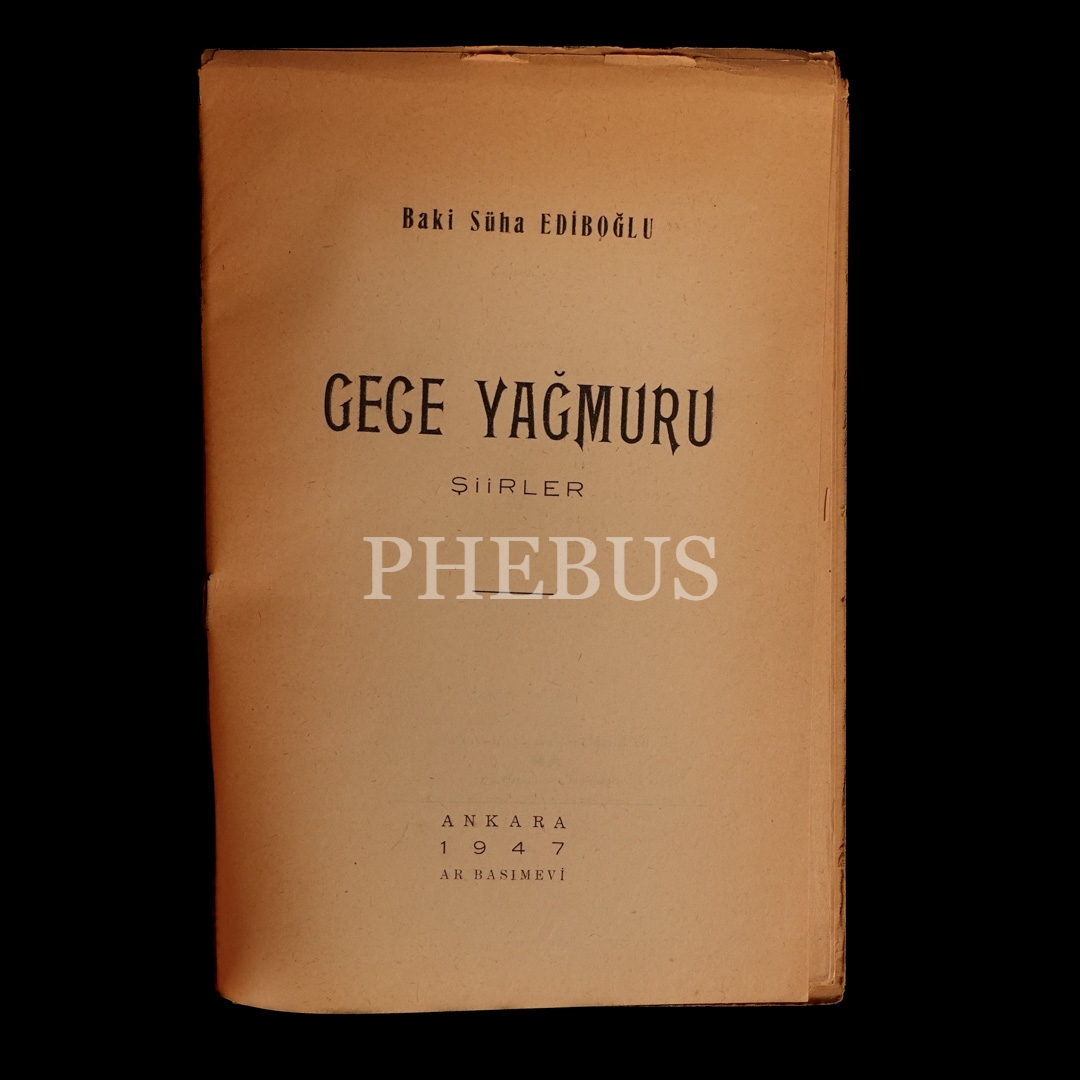 GECE YAĞMURU (Şiirler), Baki Süha Ediboğlu, 1947, Ar Basımevi, 31 sayfa, 14x21 cm...