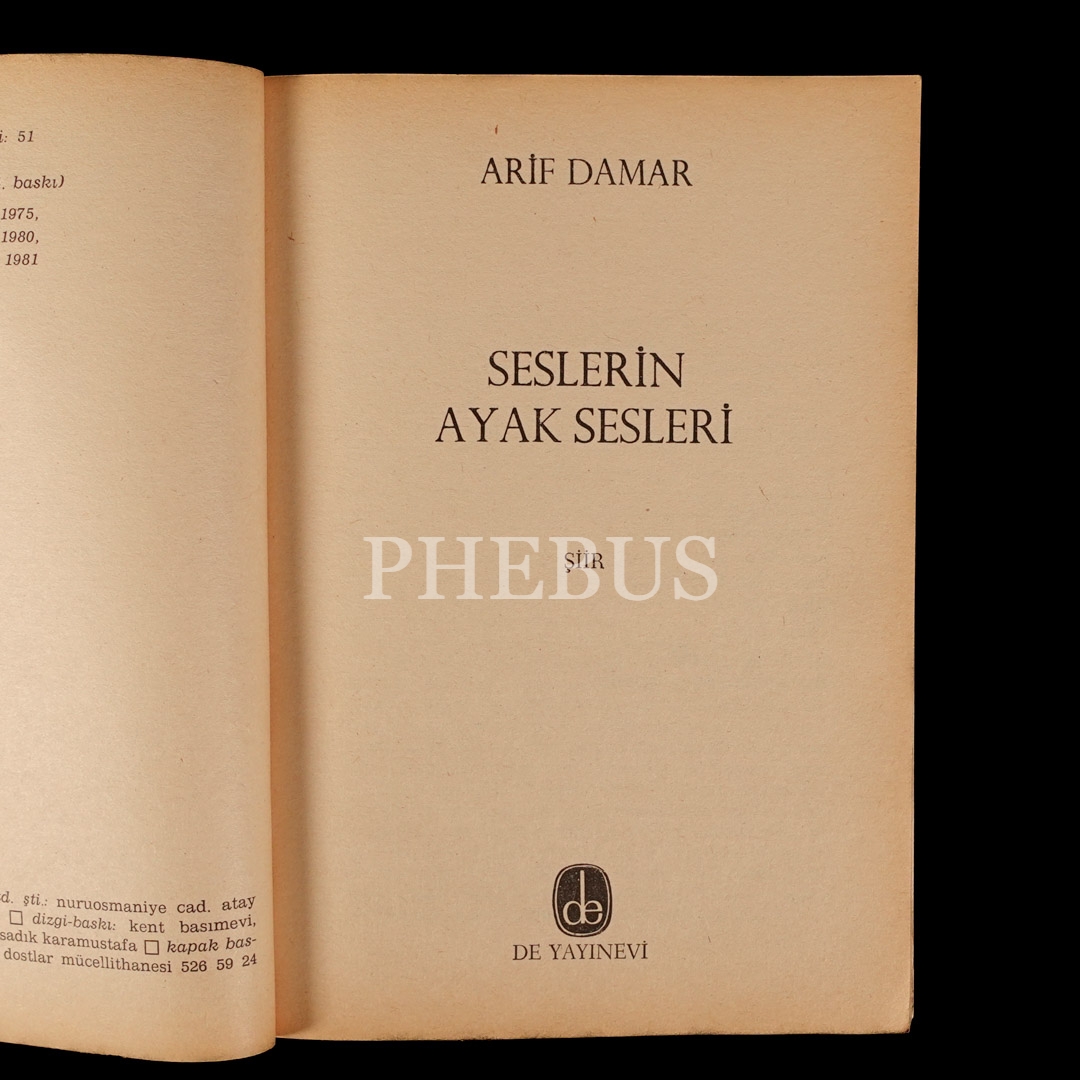 SESLERİN AYAK SESLERİ, Arif Damar, 1981, De Yayınevi, 78 sayfa, 14x20 cm...