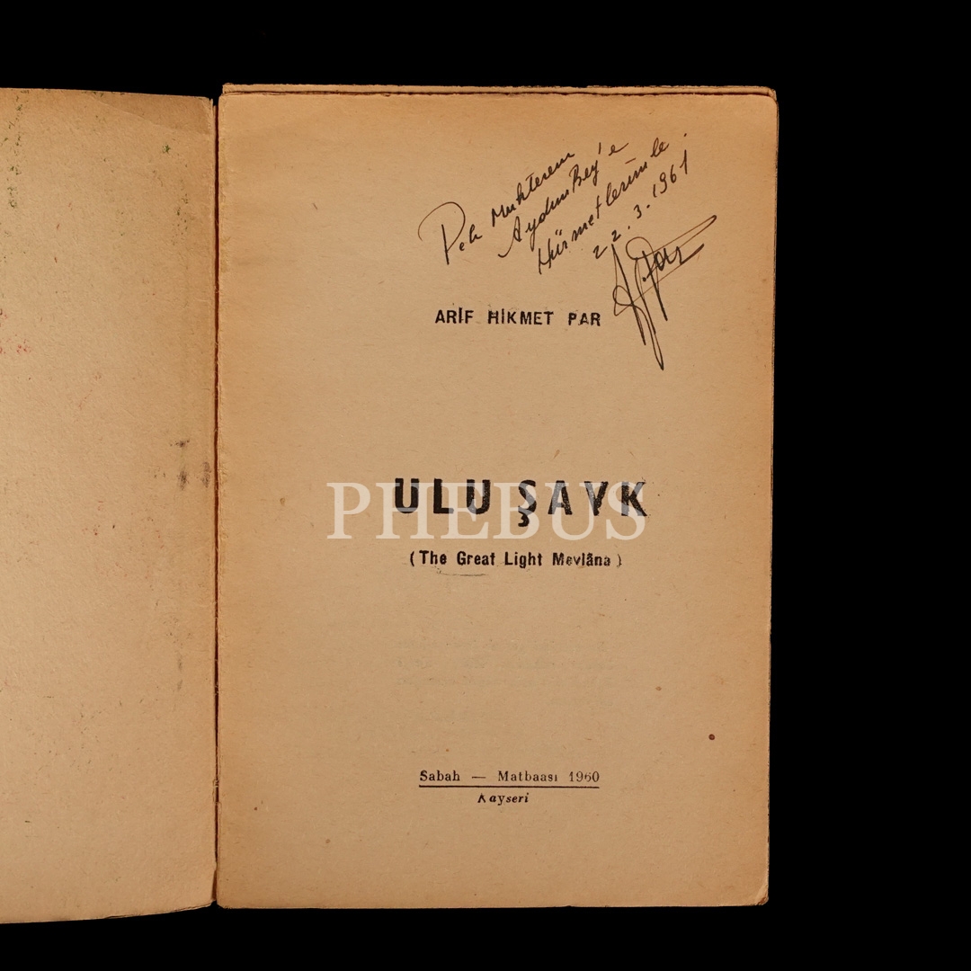 ULU ŞAVK (The Great Light Mevlâna), Arif Hikmet Par, 1960, Sabah Matbaası (Kayseri), 48 sayfa, 14x20 cm...
