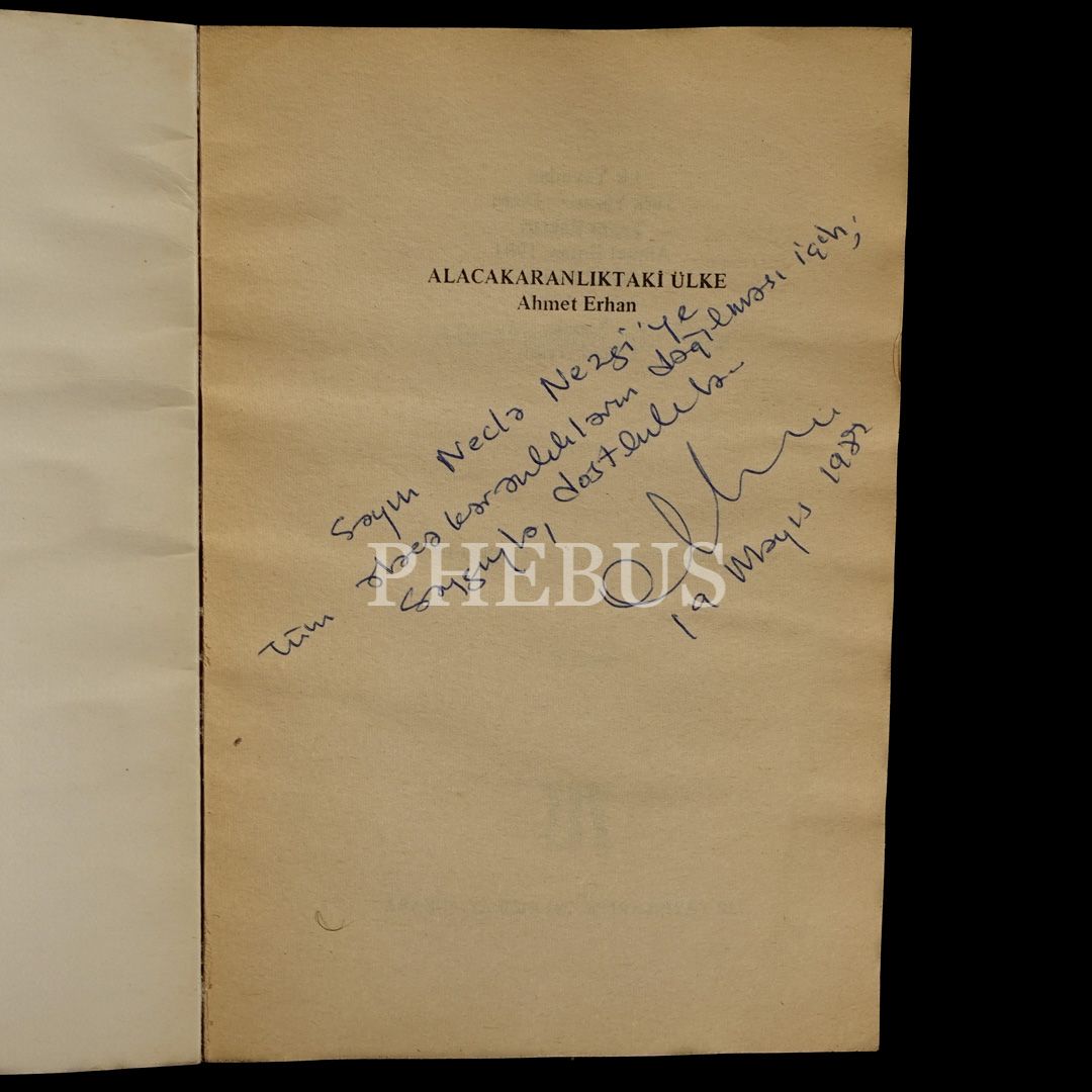 "Sayın Necla Nezgi´ye tüm alacakaranlıkların dağılması için; saygıyla, dostlukla." ithafıyla imzalıdır. *Arka kapağın sol üst köşesinde kırılma ve yıpranma mevcuttur.
