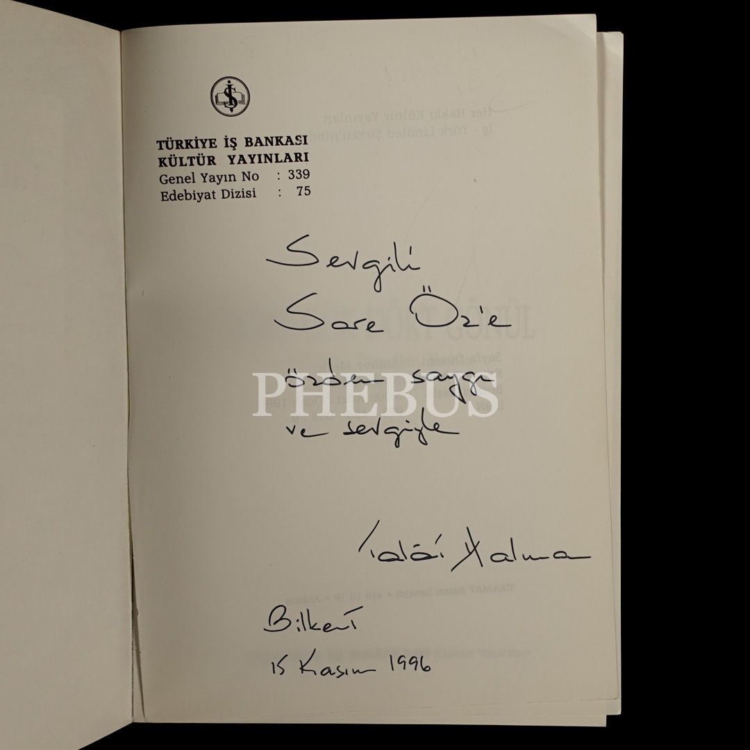"Sevgili Sare Öz´e özden saygı ve sevgiyle." ithafıyla imzalıdır.