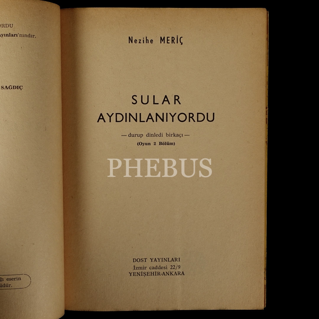 SULAR AYDINLANIYORDU (Oyun, 2 Bölüm), Nezihe Meriç, 1970, Dost Yayınları, 57 sayfa, 14x20 cm...