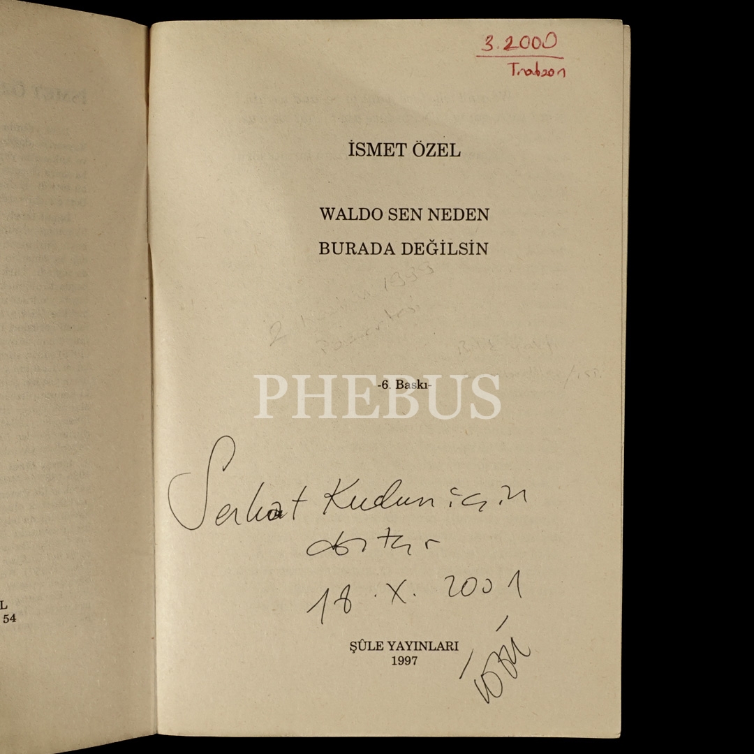 WALDO SEN NEDEN BURADA DEĞİLSİN, İsmet Özel, 1997, Şûle Yayınları, 118 sayfa, 13x20 cm...