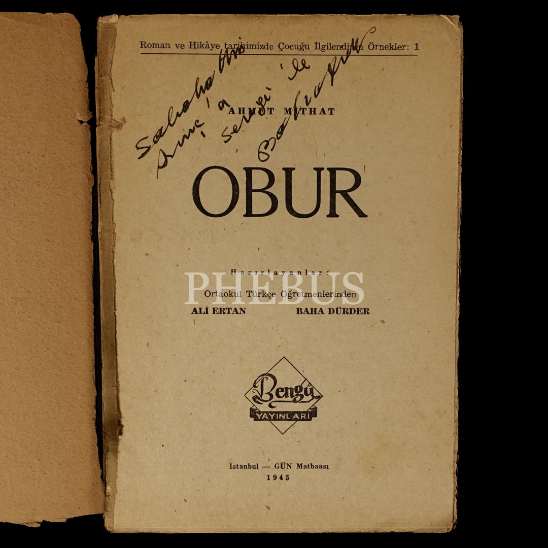 OBUR, Ahmet Mithat, (hazırlayanlar: Ali Ertan & Baha Dürder), 1945, Bengü Yayınları, 62 sayfa, 15x21 cm...