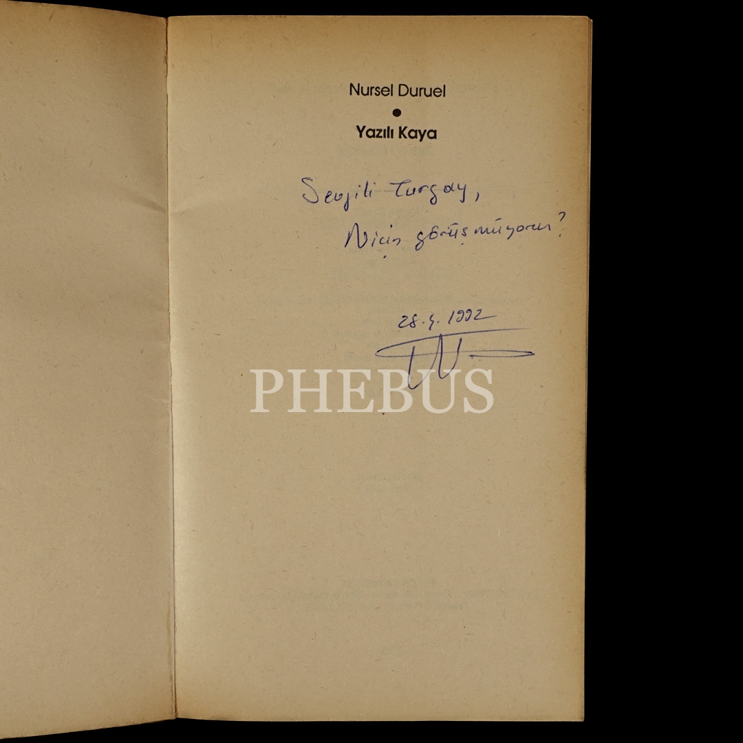 YAZILI KAYA, Nursel Duruel, 1992, Telos Yayıncılık, 79 sayfa, 12x20 cm...