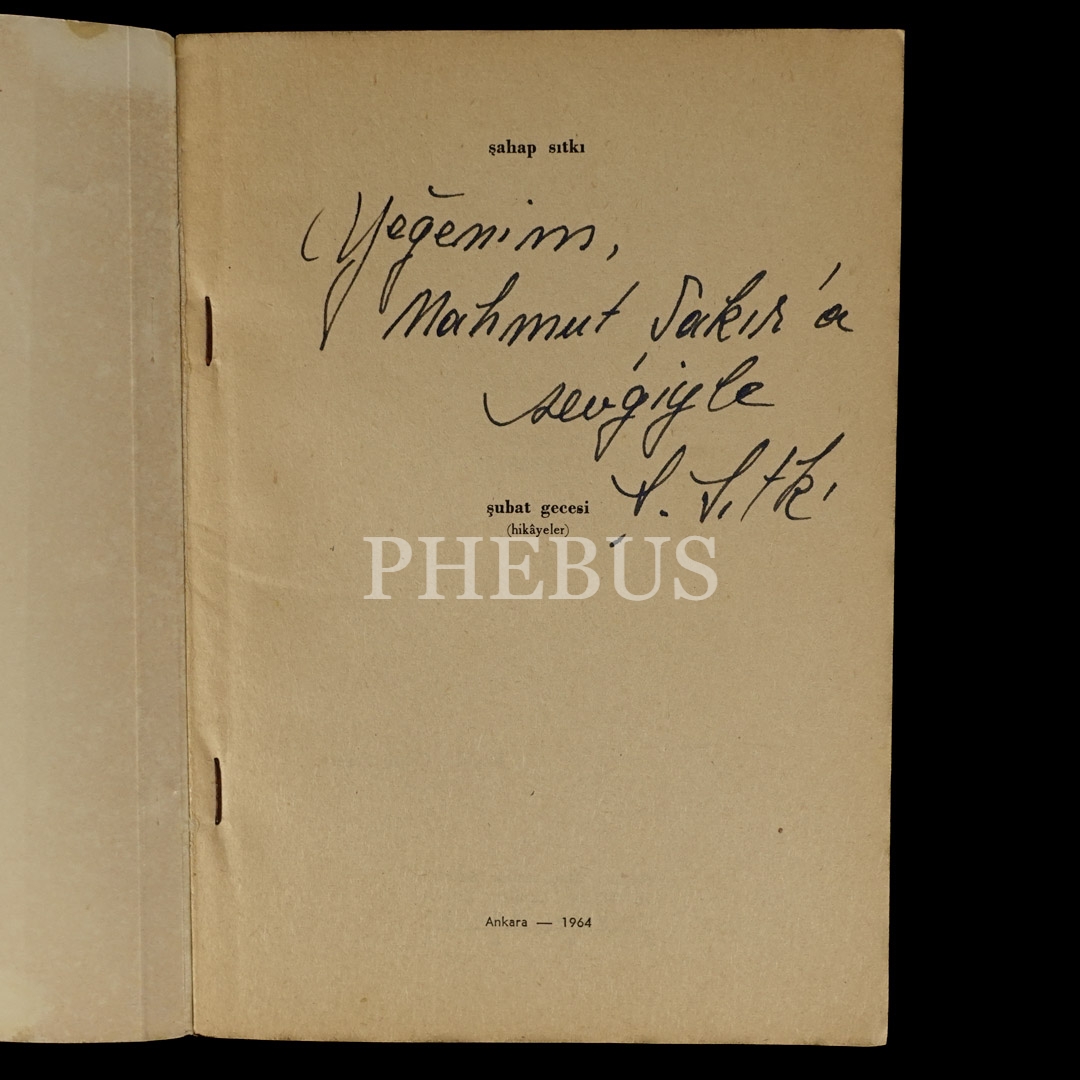 ŞUBAT GECESİ (Hikâyeler), Şahap Sıtkı, 1964, Başnur Matbaası, 79 sayfa, 14x20 cm...