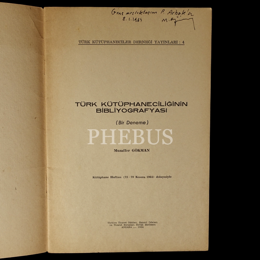 "Genç meslektaşım P. Arbak´a." ithafıyla imzalıdır.