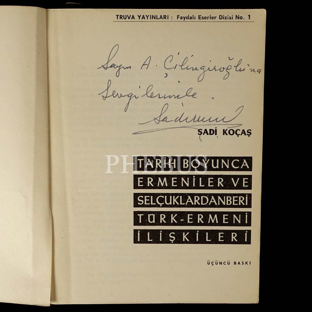 TARİH BOYUNCA ERMENİLER VE SELÇUKLARDAN BERİ TÜRK-ERMENİ İLİŞKİLERİ, Sadi Koçaş, 1970, Truva Yayınları, 338 sayfa, 13x18 cm...