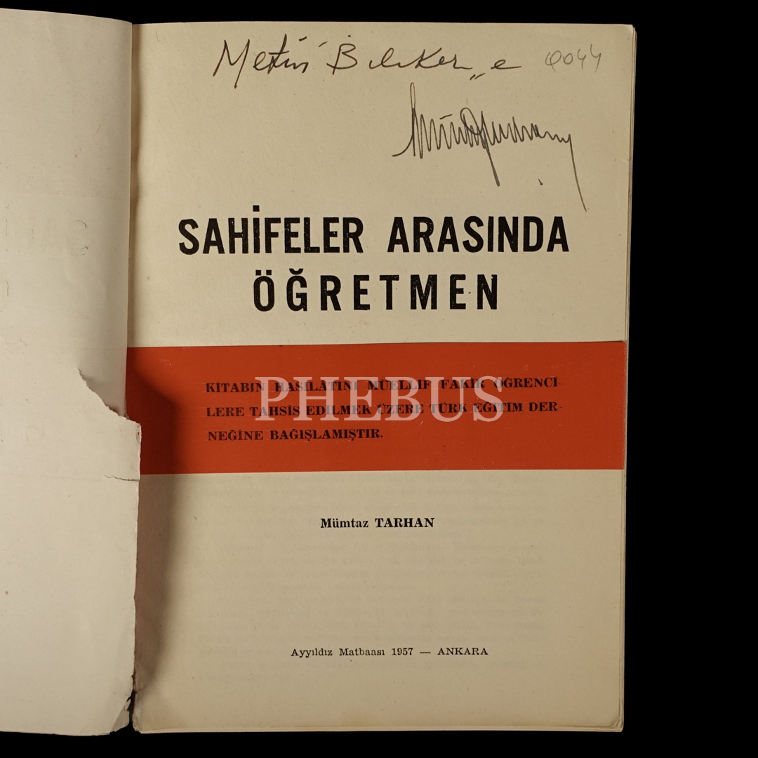 SAHİFELER ARASINDA ÖĞRETMEN, Mümtaz Tarhan, 1958, Ayyıldız Matbaası, 166 sayfa, 14x20 cm...