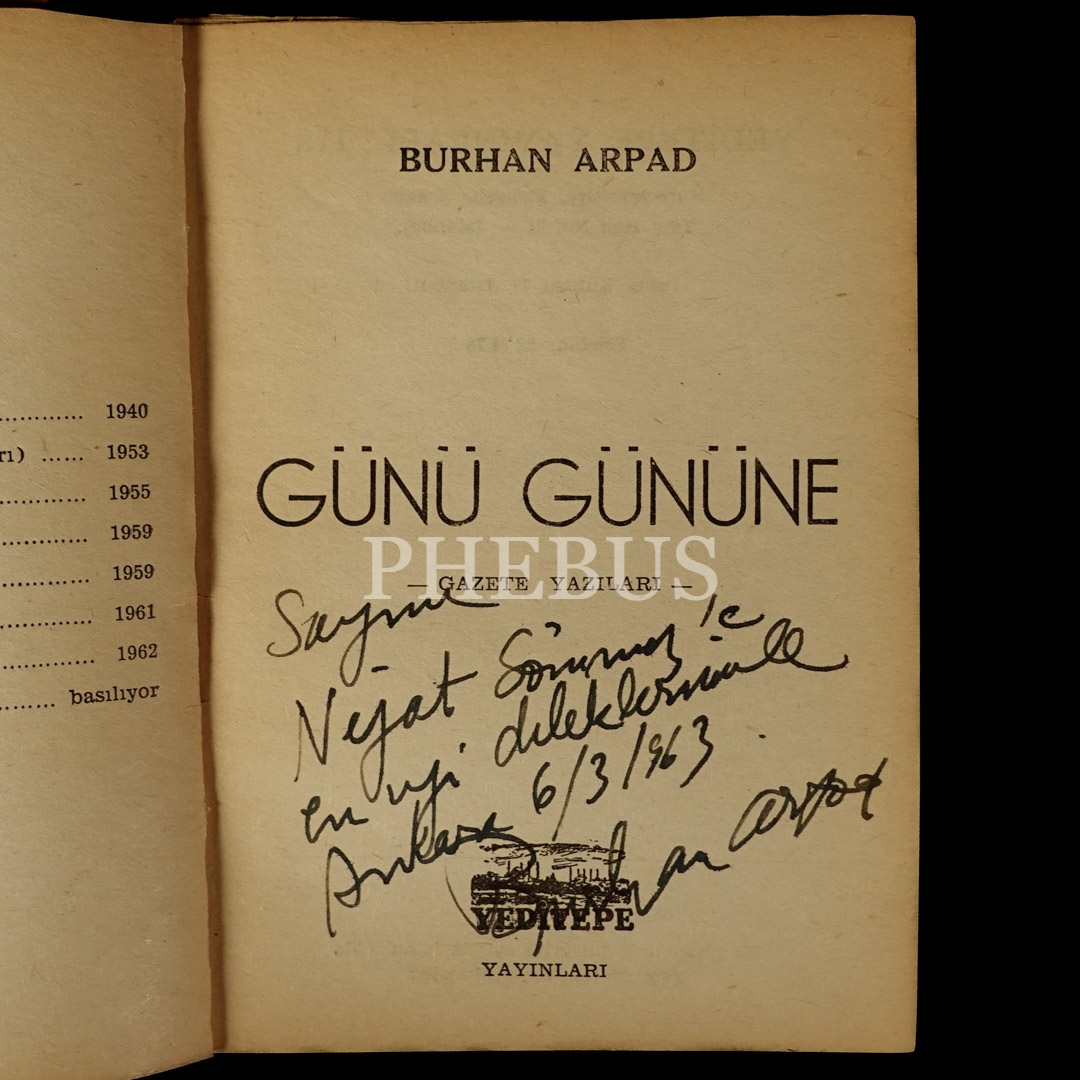 GÜNÜ GÜNÜNE (Gazete Yazıları), Burhan Arpad, 1962, Yeditepe Yayınları, 86 sayfa, 12x17 cm...