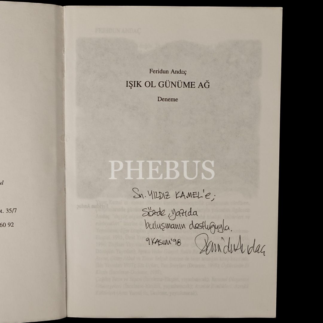 "Sn. Yıldız Kamel´e; sözde, yazıda buluşmanın dostluğuyla." ithafıyla imzalıdır.