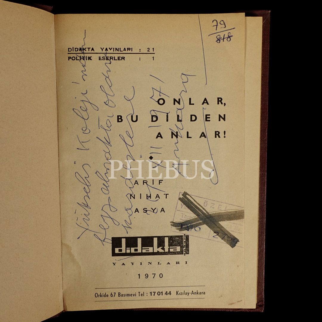 ONLAR BU DİLDEN ANLAR, Arif Nihat Asya, 1970, Didakta Yayınları, 111 sayfa, 14x20 cm...