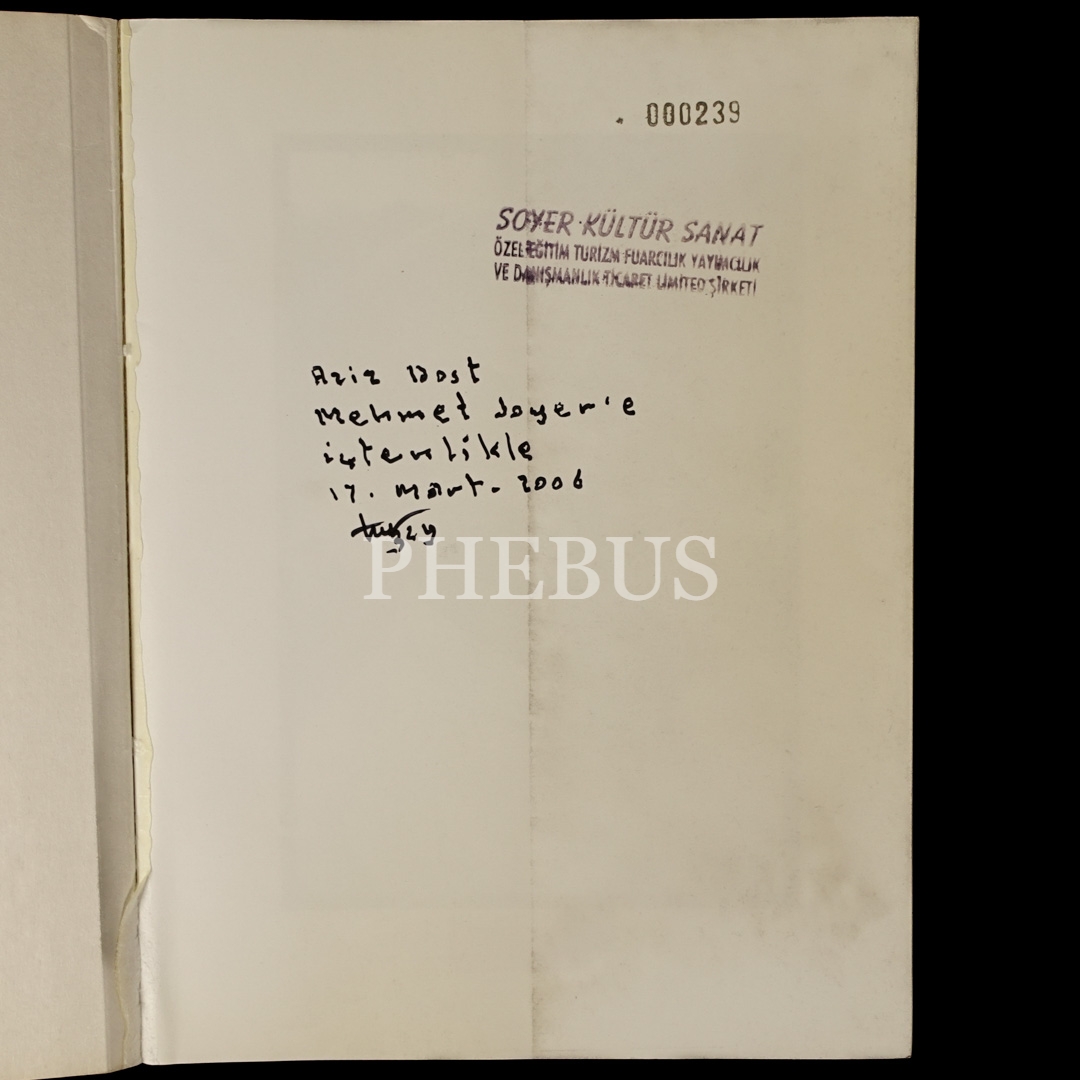 "Aziz Dost Mehmet Soyer´e içtenlikle." ithafıyla imzalıdır.