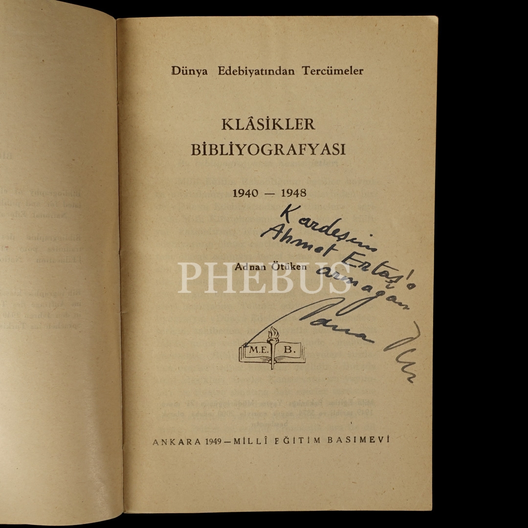 KLÂSİKLER BİBLİYOGRAFYASI (1940-1948), Adnan Ötüken, 1949, Millî Eğitim Basımevi, 12x18 cm...
