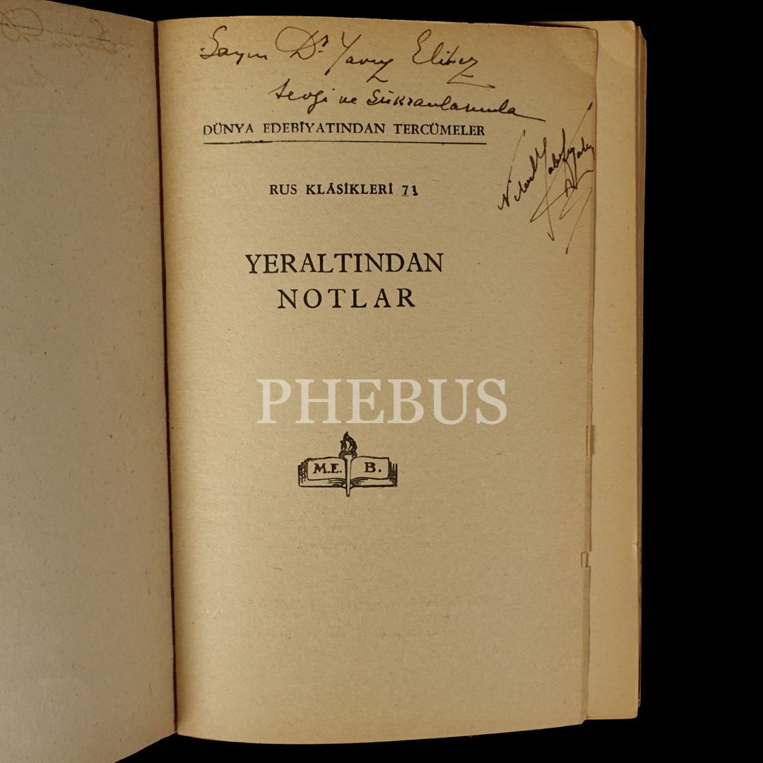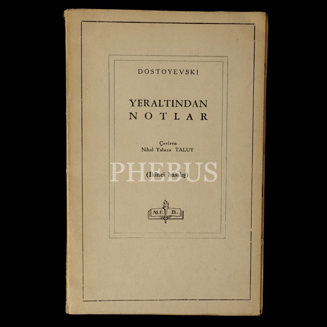 YERALTINDAN NOTLAR, Dostoyevski, (çeviren: Nihal Yalaza Taluy), 1963, Millî Eğitim Basımevi, 147 sayfa, 12x18 cm...