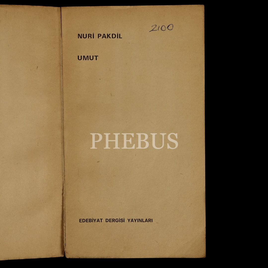 UMUT, Nuri Pakdil, 1974, Edebiyat Dergisi Yayınları, 124 sayfa, 11x19 cm...
