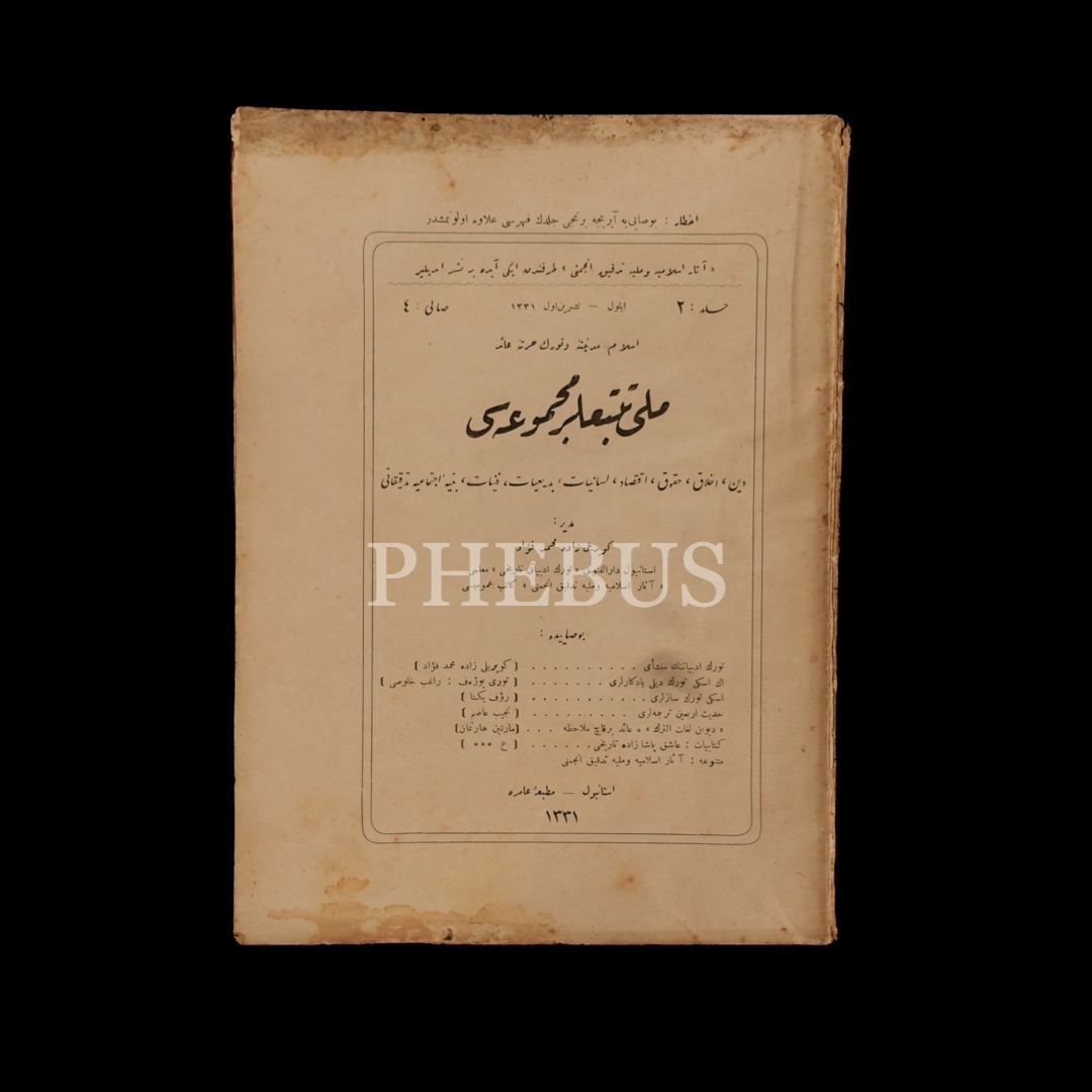 Âsar-ı İslamiye ve Milliye Encümen-i Tedkik Heyeti tarafından çıkarılan ve yalnızca 5 sayı çıkarılabildiği halde kültür ve edebiyat sahasında derin izler bırakmış ve birçok çalışmaya kaynaklık etmiş olan mecmua... Ziya Gökalp, Fuad Köprülü, Rauf Yekta gibi yerli yazarların yanı sıra, W. Barthold, Martin Harmann gibi Türkiyatçıların çevirilerine yer verilen mecmua, döneminin en kaliteli süreli yayını olarak kabul edilir. *2. cildin kapakları eksiktir.