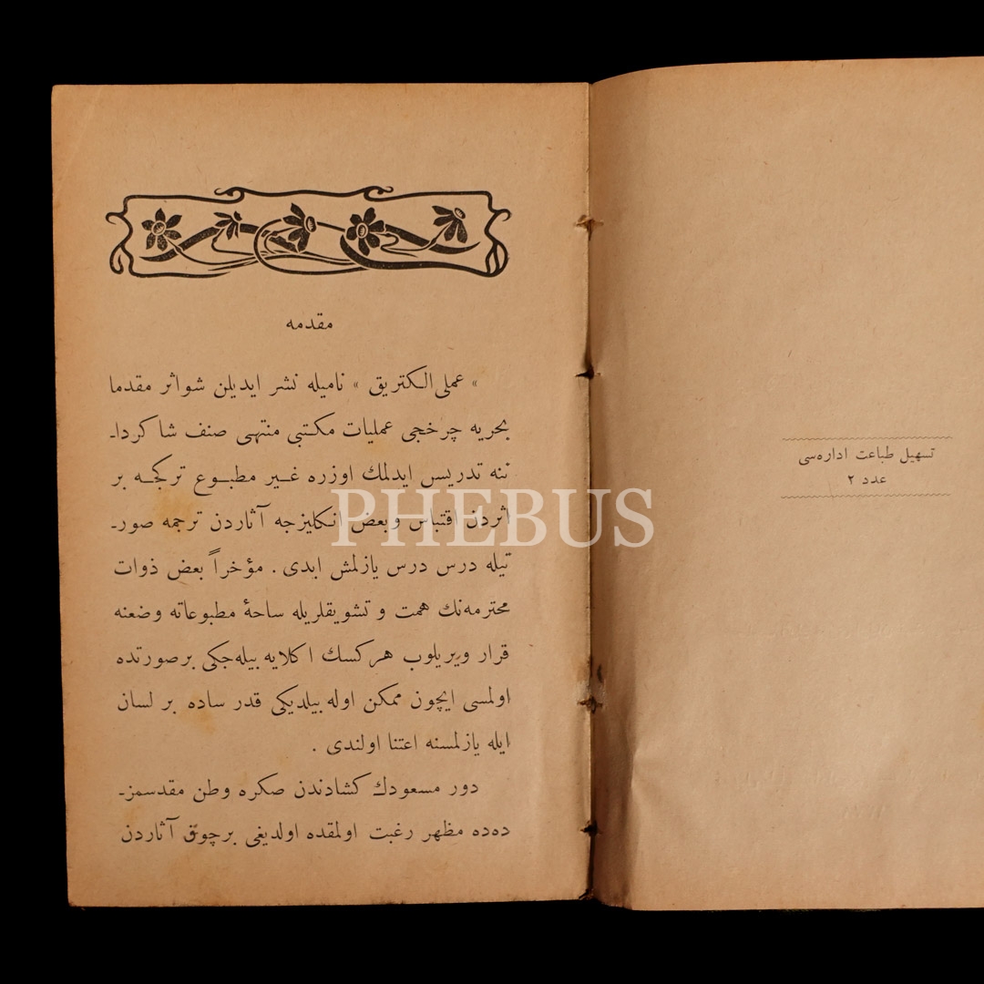 Tershane-i Amire Elektrik Fabrikası çarhçılarından Mustafa Lütfü Efendi'nin, Bahriye Çarhçı Ameliyat Mektebi'nin son sınıf öğrencilerinin elektrik derslerinde okutulmak üzere kaleme aldığı eseridir.