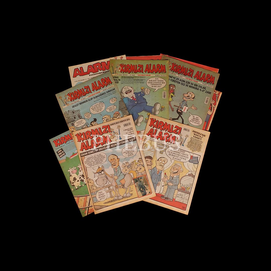KIRMIZI ALARM dergisinin 2003 yılında yayımlanan 11 sayısı ile ALARM dergisinin aynı tarihli ilk 3 sayısı, 28x36 cm...