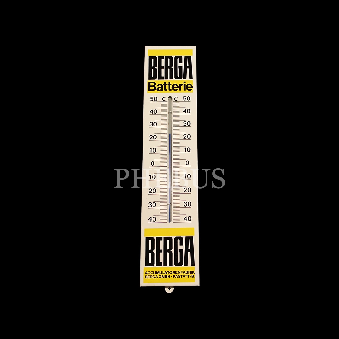 Rastatt (Almanya) merkezli Batarya fabrikası BERGA reklamlı metal termometre, 12x52 cm...
