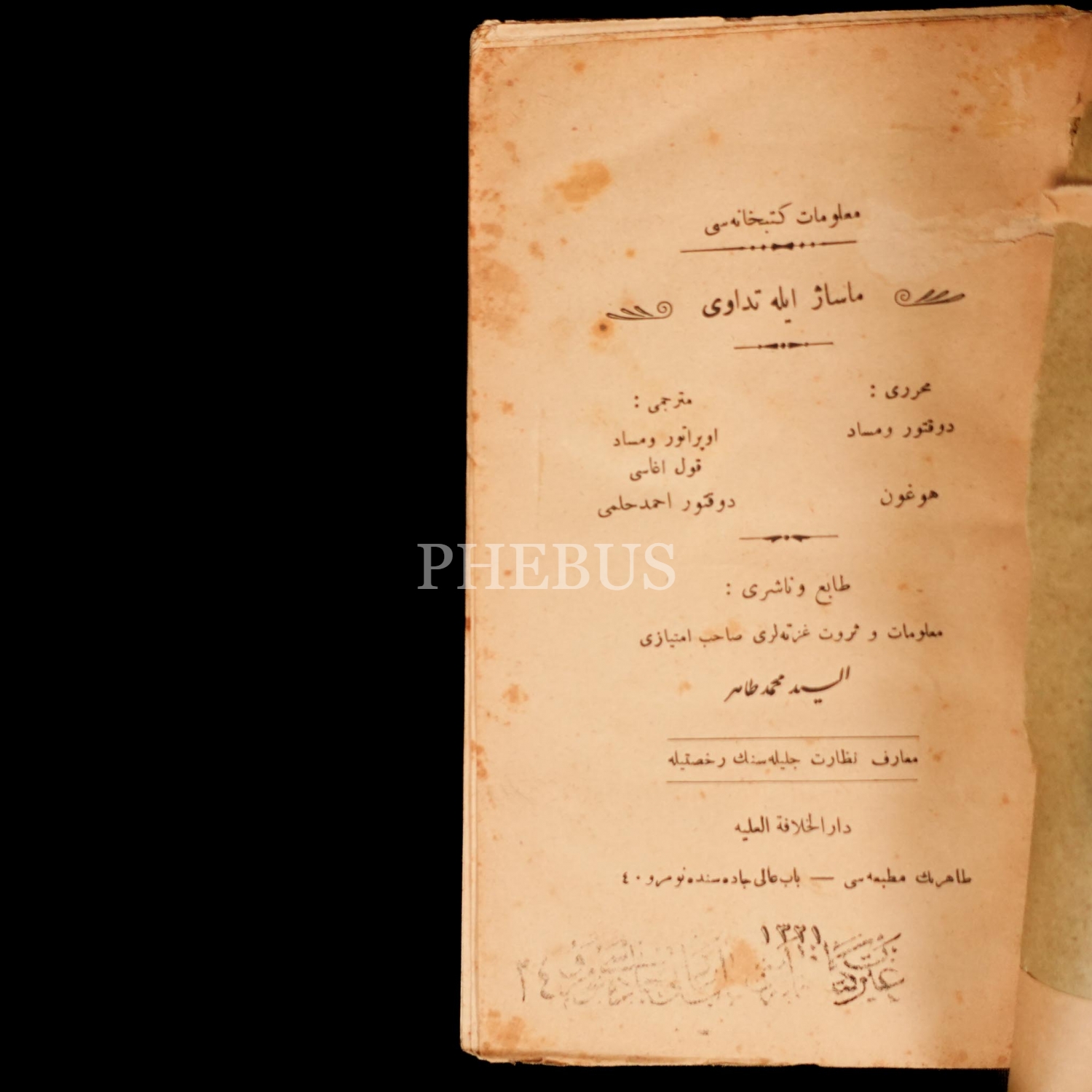 MASAJ İLE TEDAVİ, Hugun, (Çeviren: Ahmed Hilmi), 1321, Tahir Bey Matbaası, 263 sayfa, 12x19 cm...