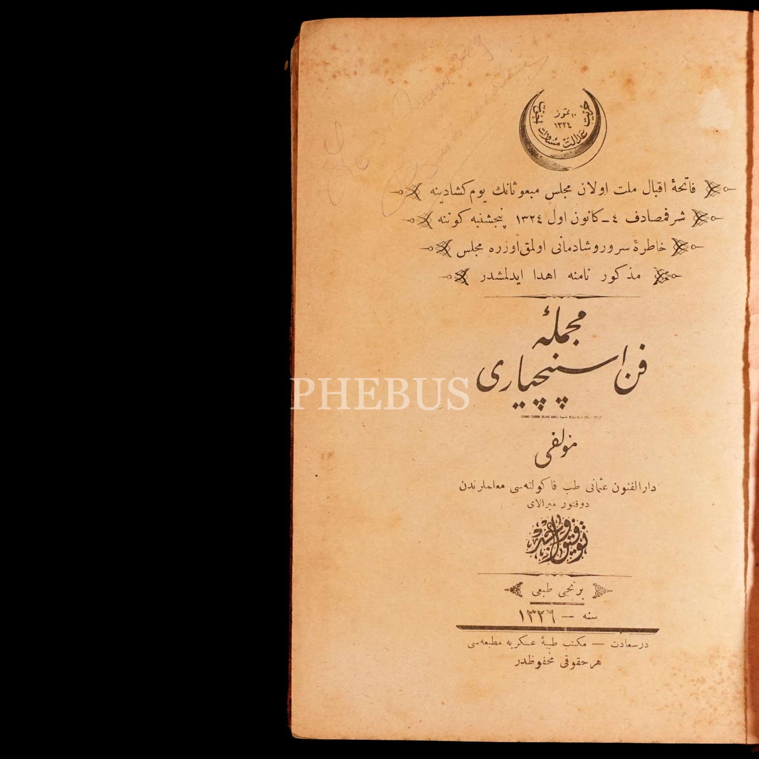 MÜCMELE-İ FENN-İ İSPENÇİYARİ, Tevfik Vacid, 1326, Mekteb-i Tıbbiye-i Askeriye Matbaası, 264 sayfa, 16x24 cm...