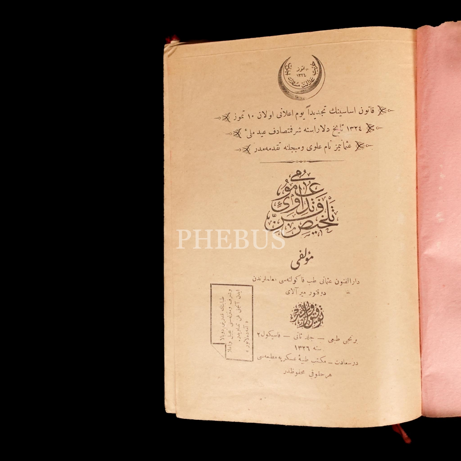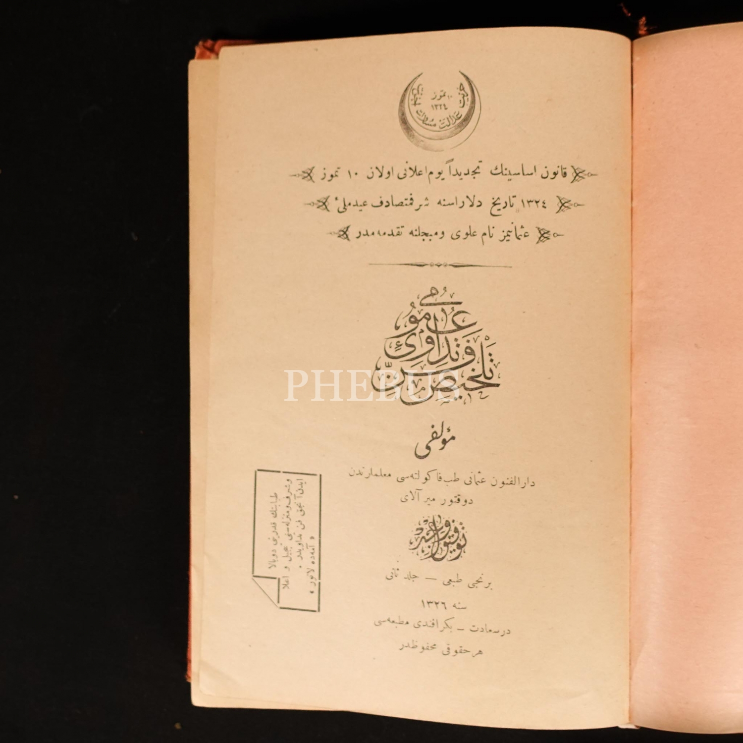 1. Cilt: 1328, Matbaa-i Hukukiye, 810 sayfa; 2. Cilt 1. Fasikül: 1326, Bekir Efendi Matbaası, 325 sayfa; 2. Cilt 2. Fasikül: 1326, Mekteb-i Tıbbiye-i Askeriye Matbaası, 371 sayfa.