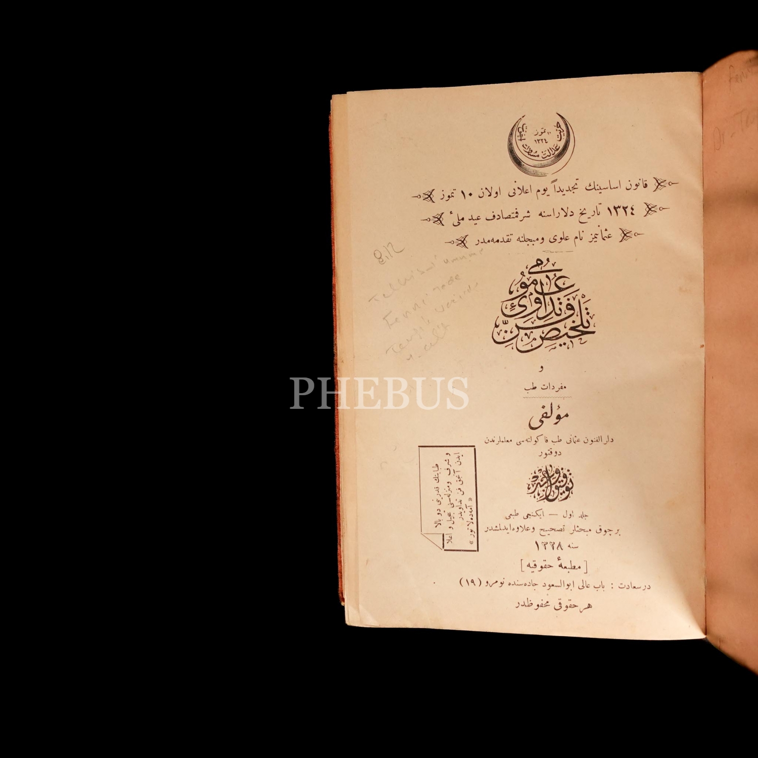 TELHİS-İ FENN-İ TEDAVİ-İ UMUMİ (1. Cilt, 2. Cilt [1 ve 2. Fasikül]), Tevfik Vacid, 1326-1328, 17x24 cm...