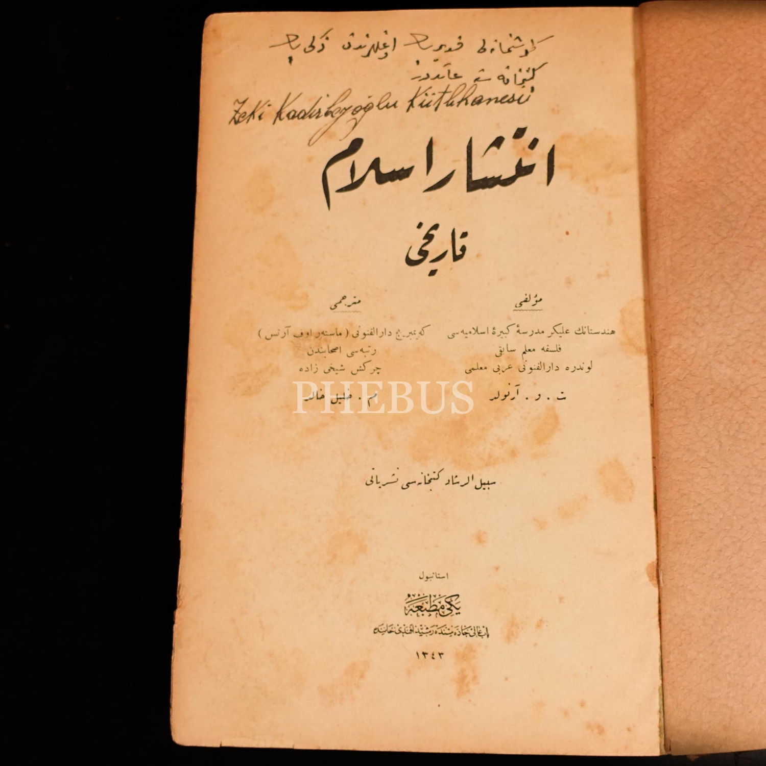 İNTİŞAR-I İSLAM TARİHİ, Sir Thomas Walker Arnold, (Çeviren: Çerkeş Şeyhizâde M. Halil Halid), 1343, Yeni Matbaa, 444 sayfa, 16x23 cm...