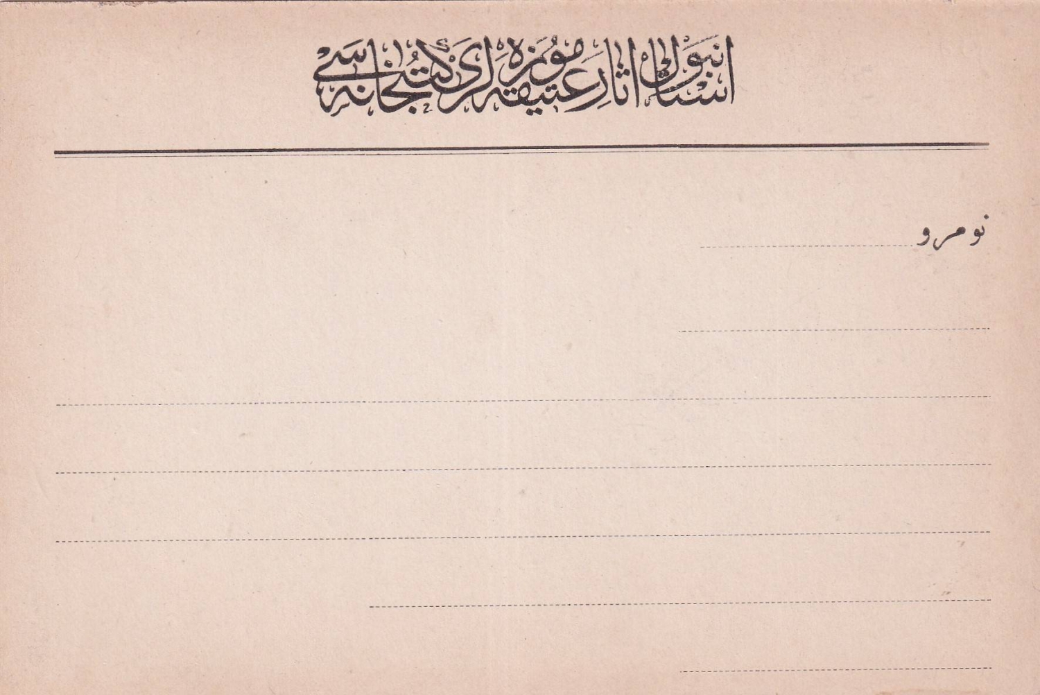 Osmanlıca İstanbul Asar-ı Atik Müzeleri Kütüphanesi antetli kart, 15x10 cm
