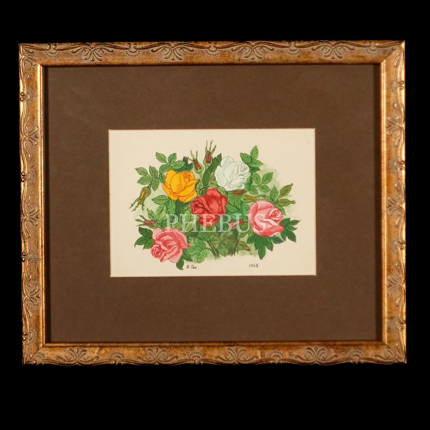 Süheyl Ünver´in öğrencisi Heti Tav imzalı gül çizimi, 1968, çerçevesiyle birlikte 27x32 cm...