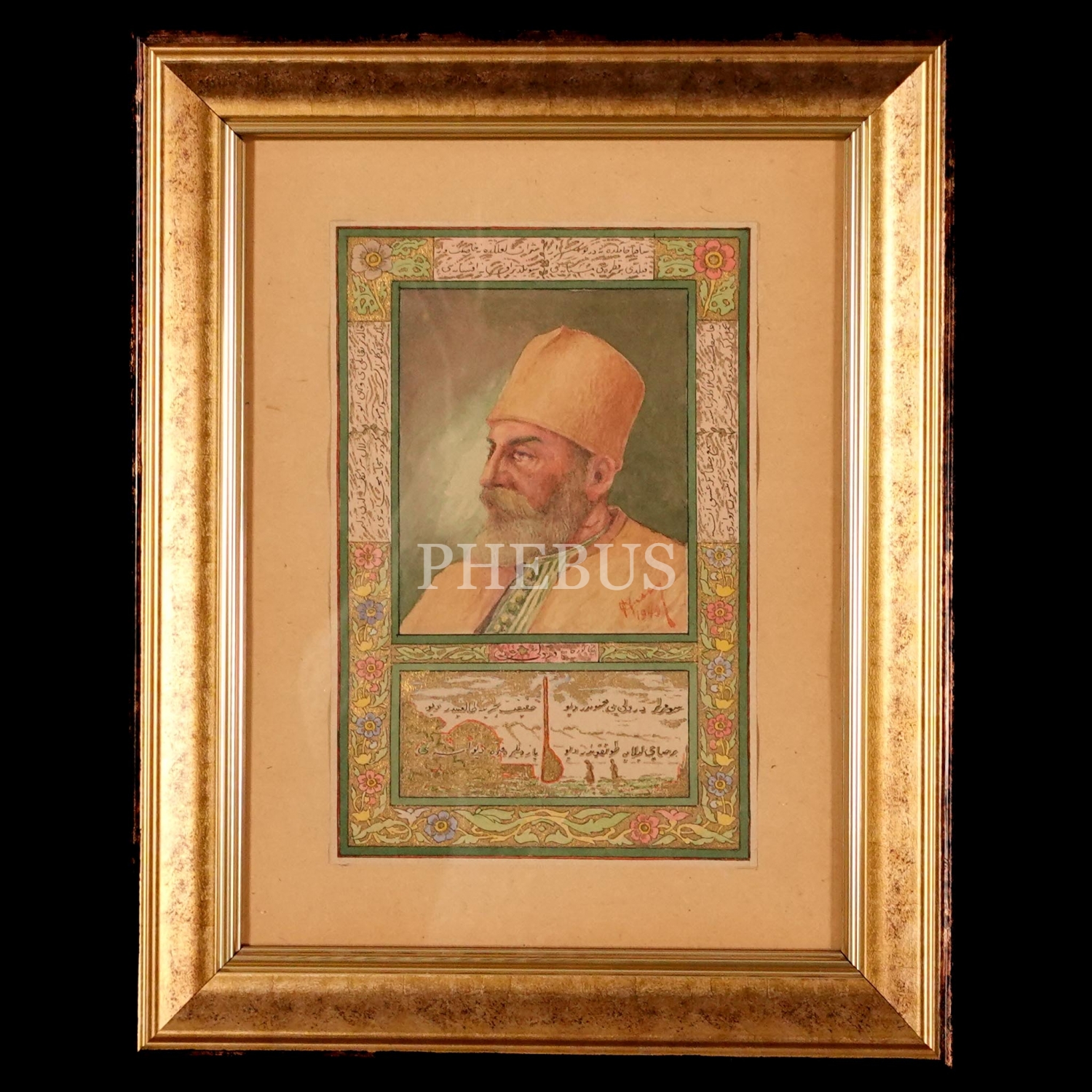 Hasan imzalı, mevlevi şeyhinin orijinal çizimi, 1949, 30x37 cm...