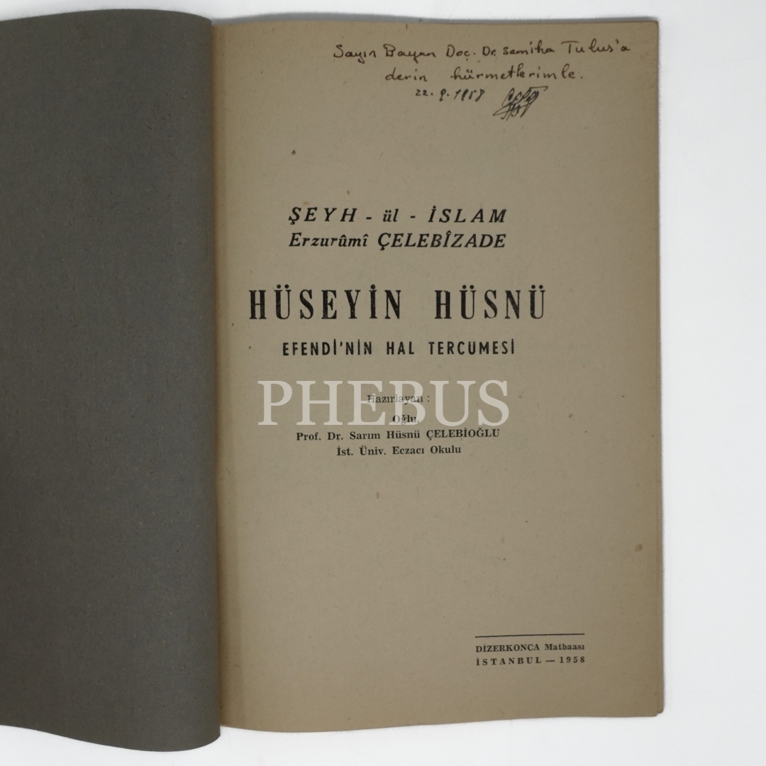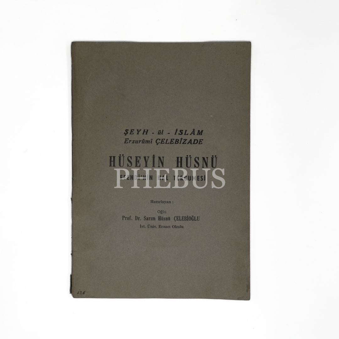 HÜSEYİN HÜSNÜ EFENDİ`NİN HAL TERCÜMESİ, Şeyh-ül İslam Erzurumî Çelebizade, (Hazırlayan: Sarım Hüsnü Çelebioğlu), 1958, Dizerkonca Matbaası, 35 sayfa, 17x24 cm...