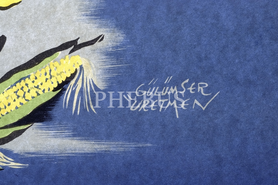 Gülümser Aral tasarımlı Denizcilik Bankası afişi, "Denizcilik Bankası Yeni ve Süratli Gemiler Yaptırıyor; Yakında Bu Rahat Gemilerle Karadeniz ve Akdenize Seyahat Edeceksiniz.", Emel Basımevi, 70x100 cm...